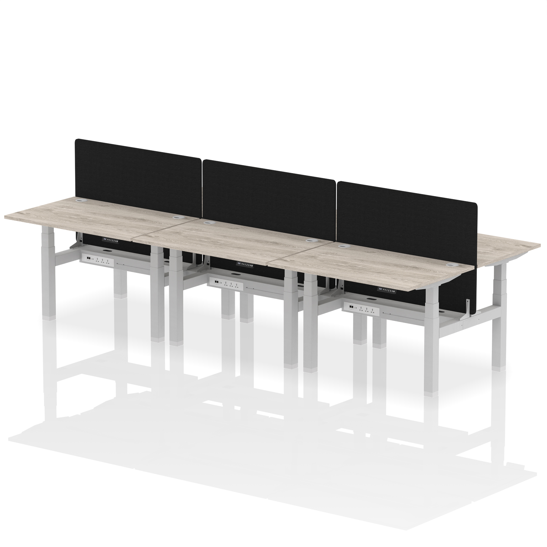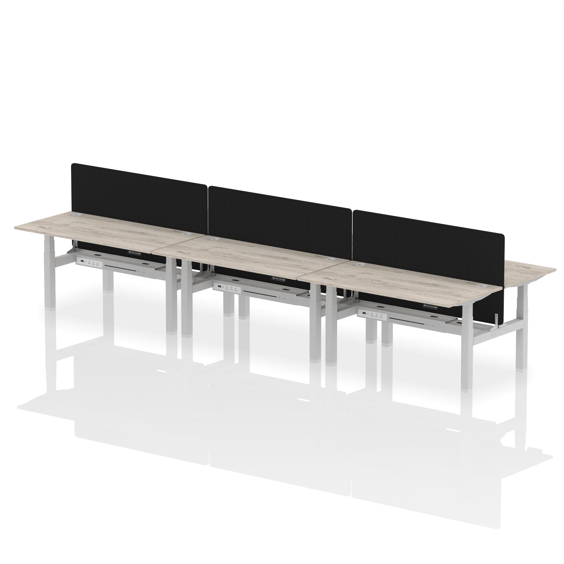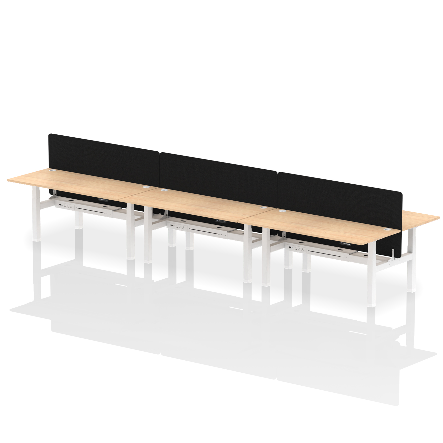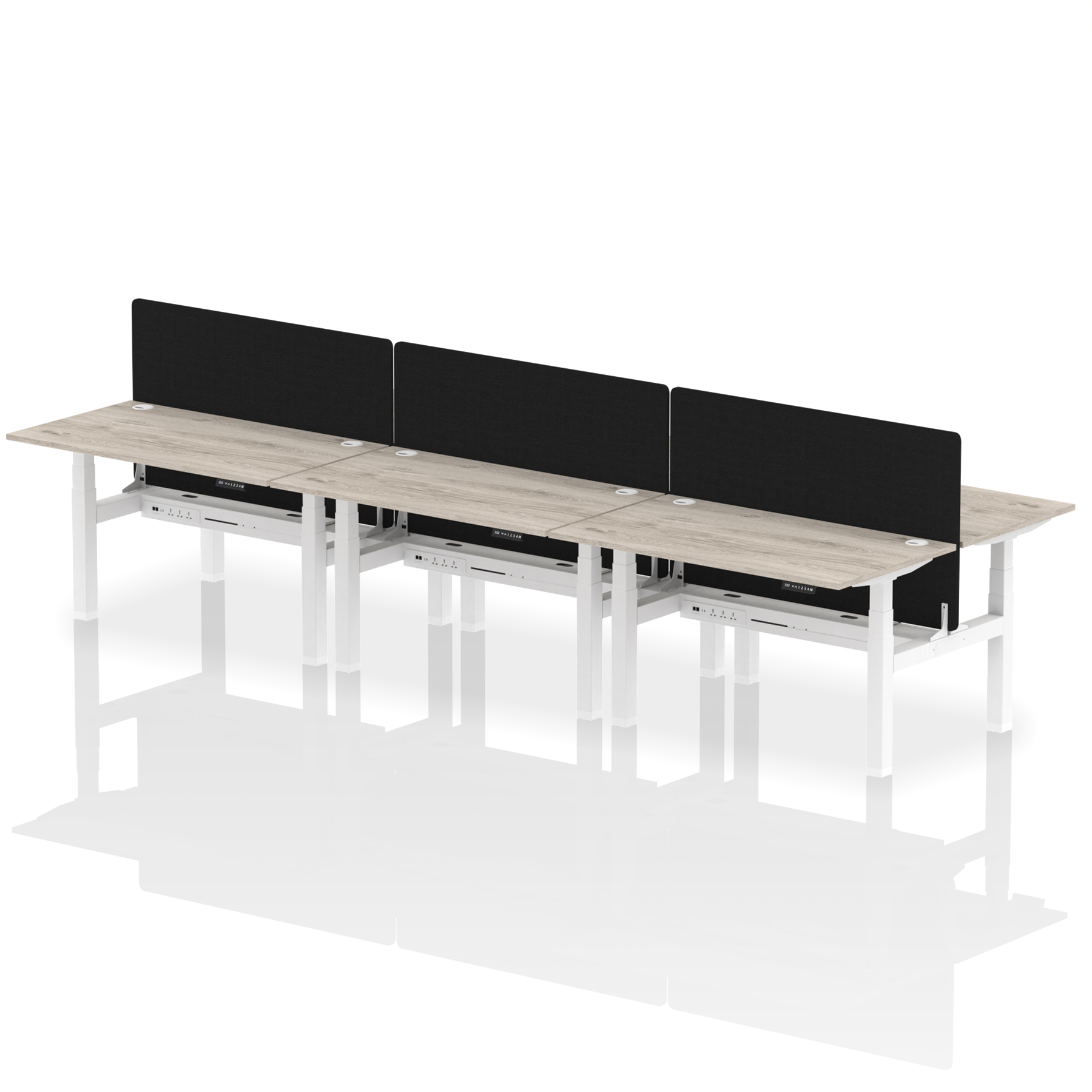 Air Back-to-Back Height Adjustable Bench Desk – 6 Person with Black Straight Screen