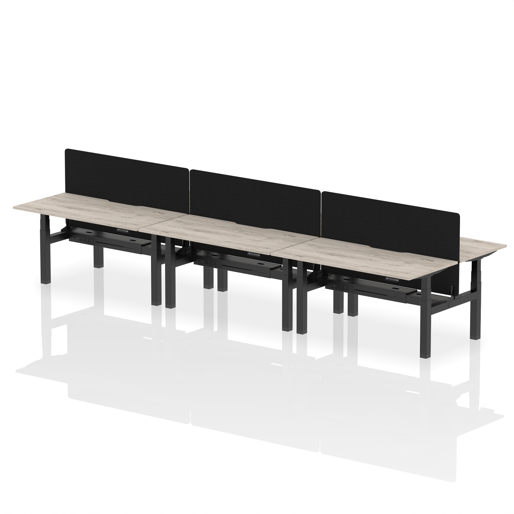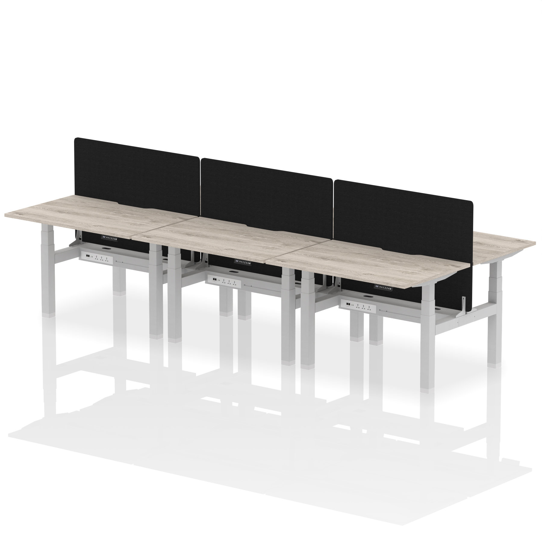 Air Back-to-Back Scalloped Edge Height Adjustable Bench Desk – 6 Person with Black Straight Screen