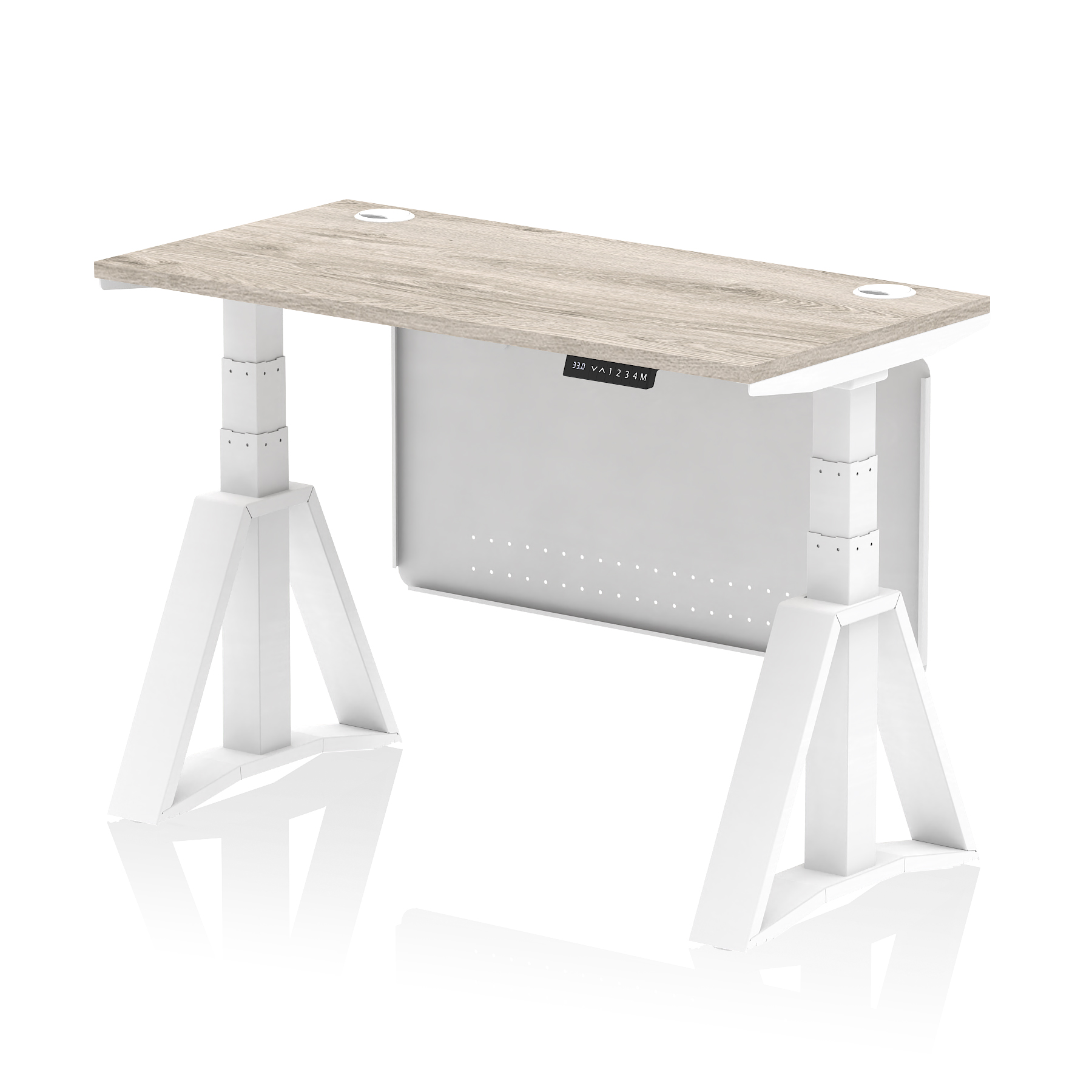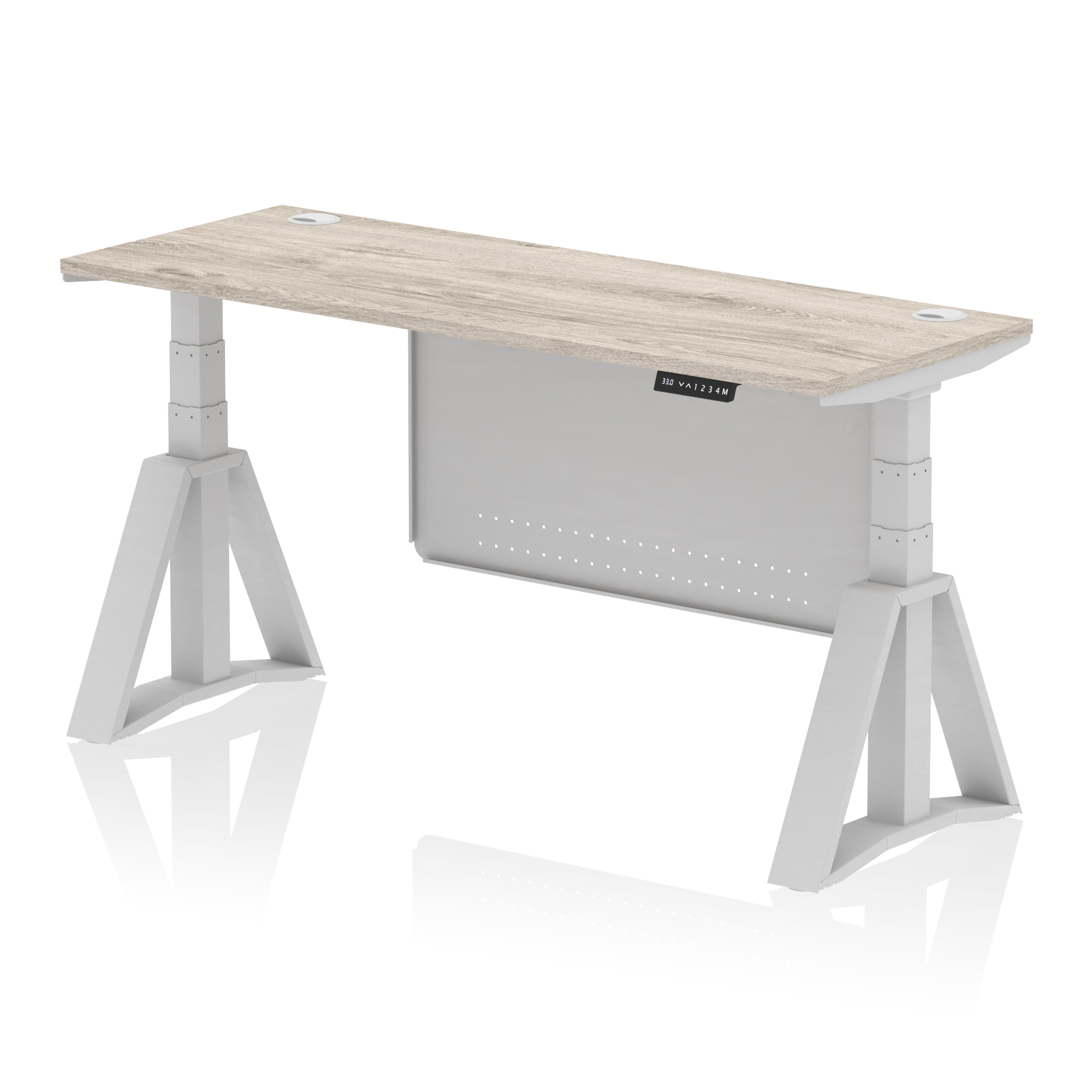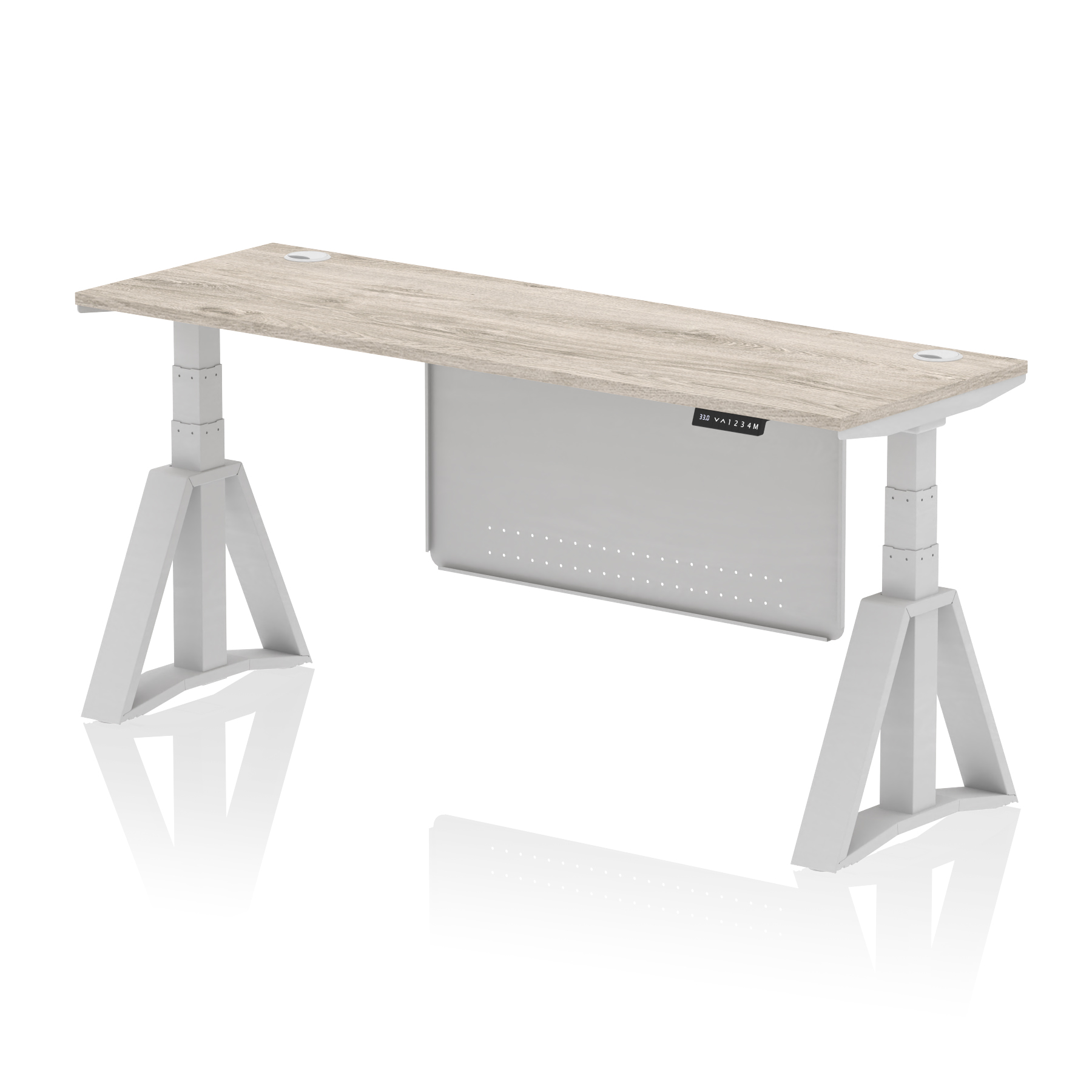 Air Height Adjustable Slimline Desk With Cable Ports With Steel Modesty Panel With Piste Foot