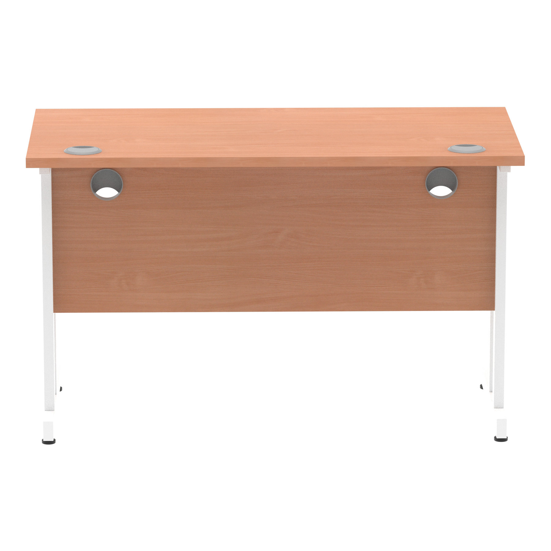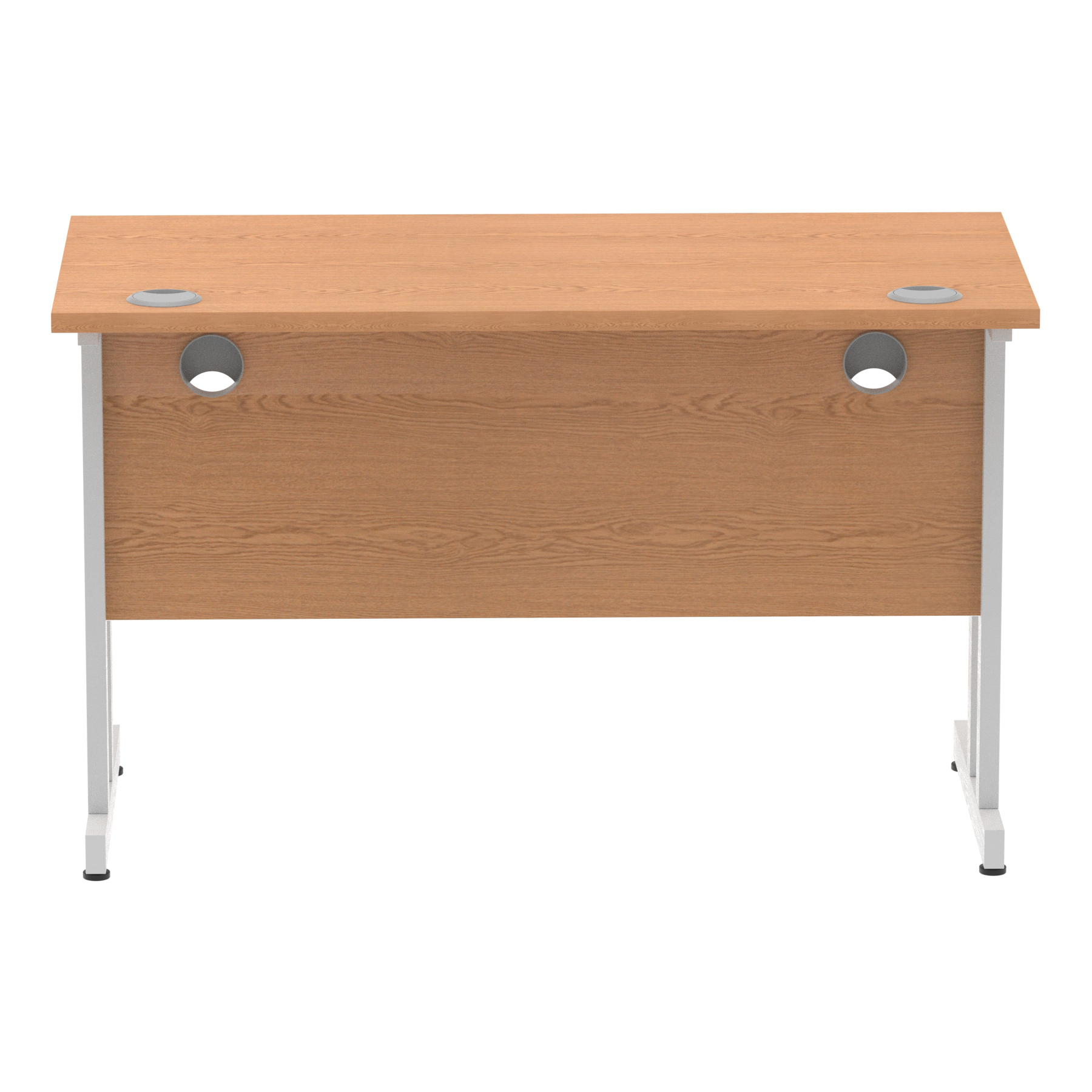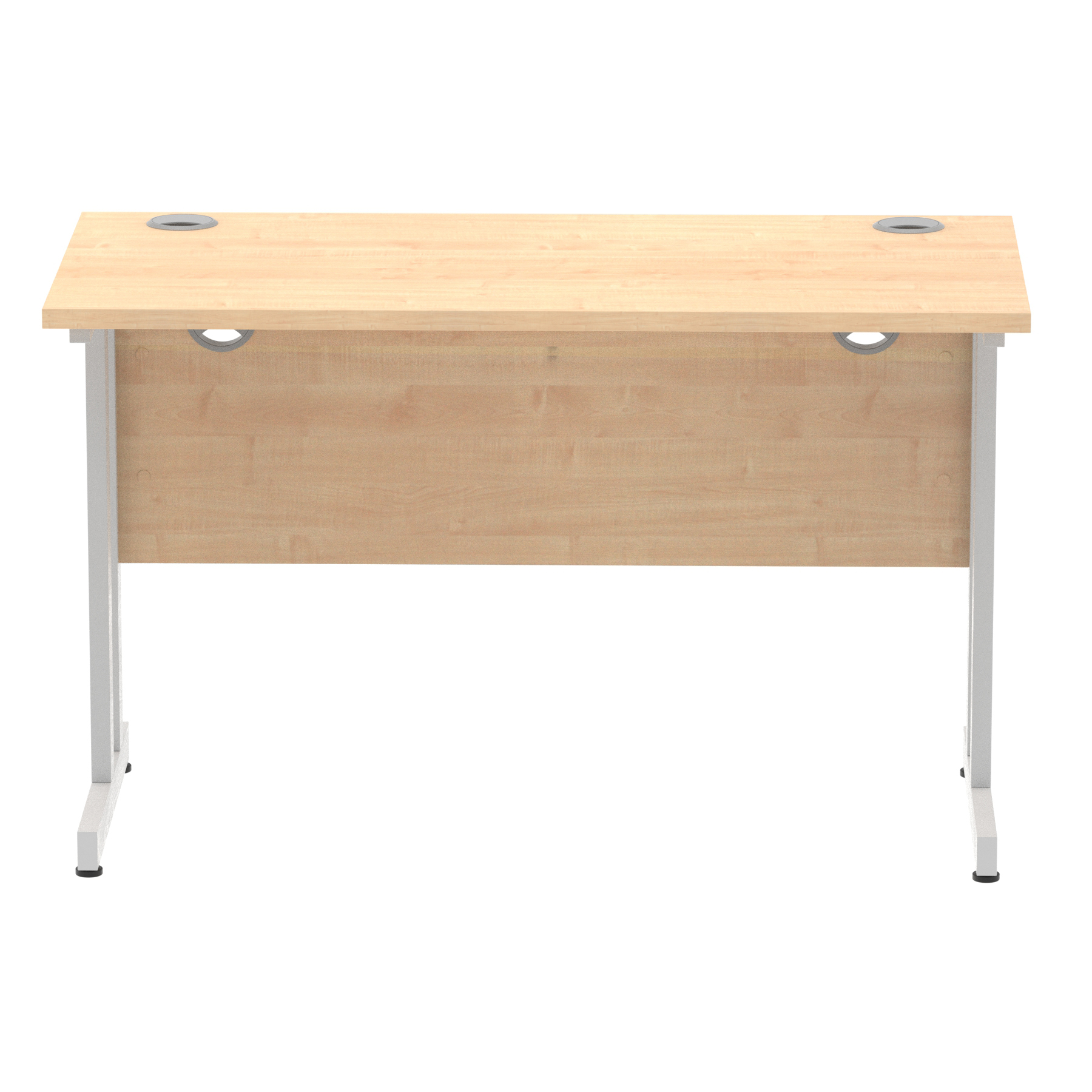 Impulse contract desk | 25mm tops | Heat resistant melamine finish | 18mm modesty panels | 2mm protective abs edging | Silver coated double strut legs | 2 cable ports | Height adjustable feet | Steel to steel fixings | 2 modesty panels slots| Deep set modesty panel (5″) allows for compatibility of most screen clamp fittings | Weight Capacity 135Kg
