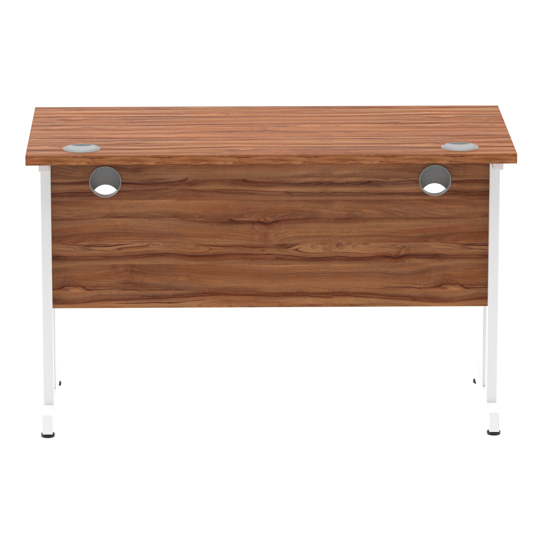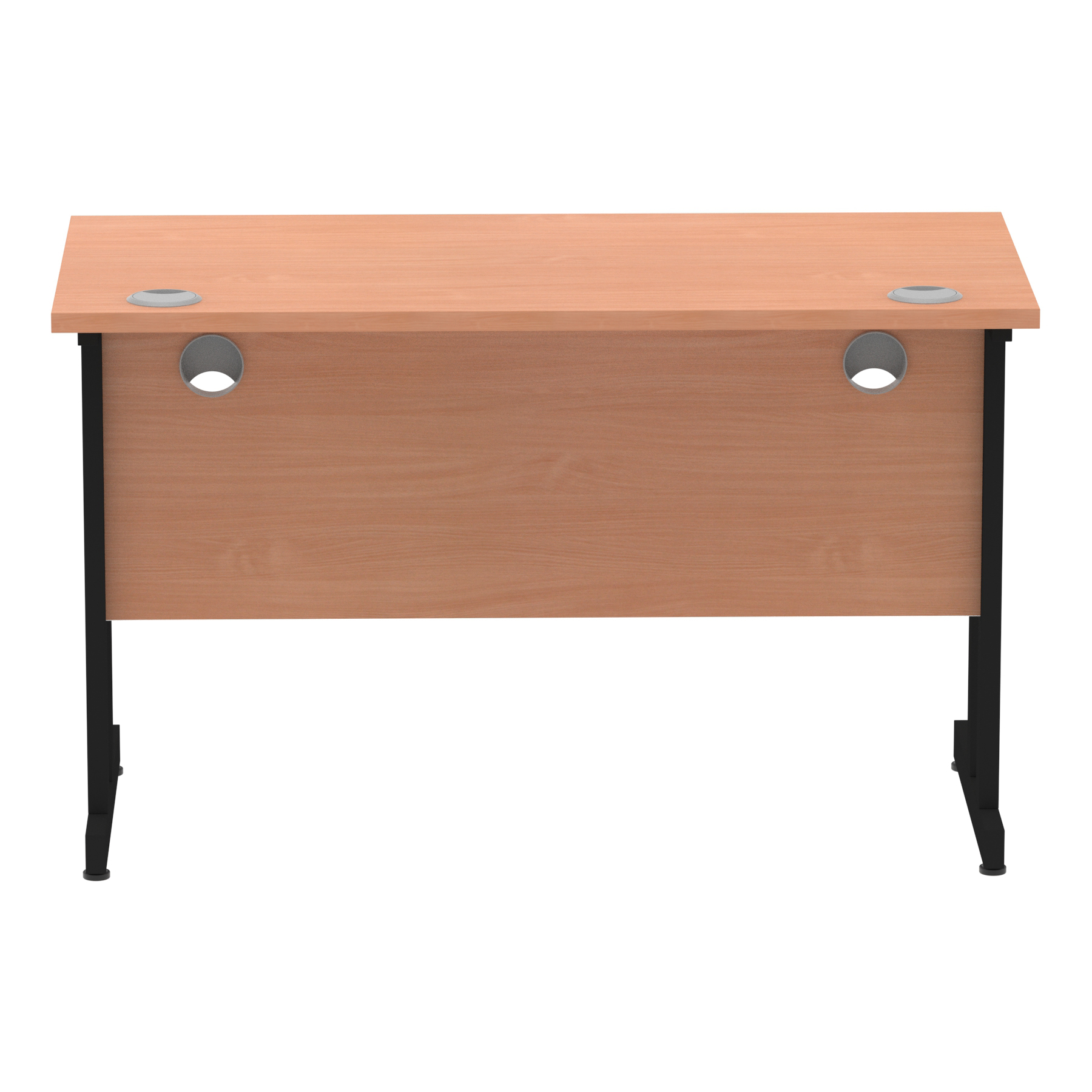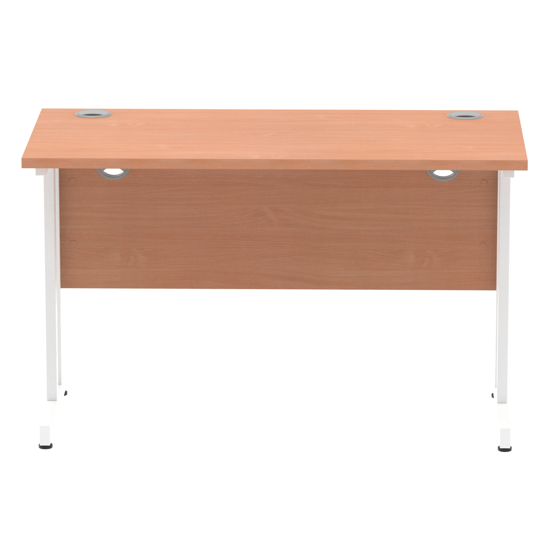 Impulse contract desk | 25mm tops | Heat resistant melamine finish | 18mm modesty panels | 2mm protective abs edging | Silver coated double strut legs | 2 cable ports | Height adjustable feet | Steel to steel fixings | 2 modesty panels slots| Deep set modesty panel (5″) allows for compatibility of most screen clamp fittings | Weight Capacity 135Kg