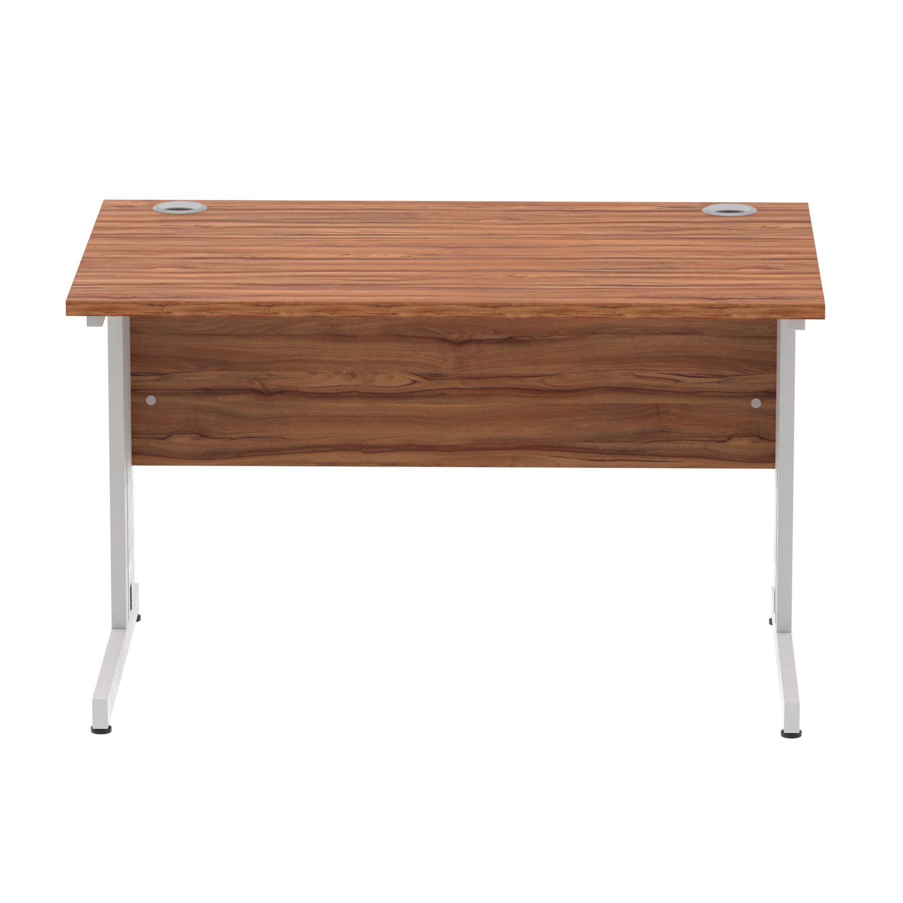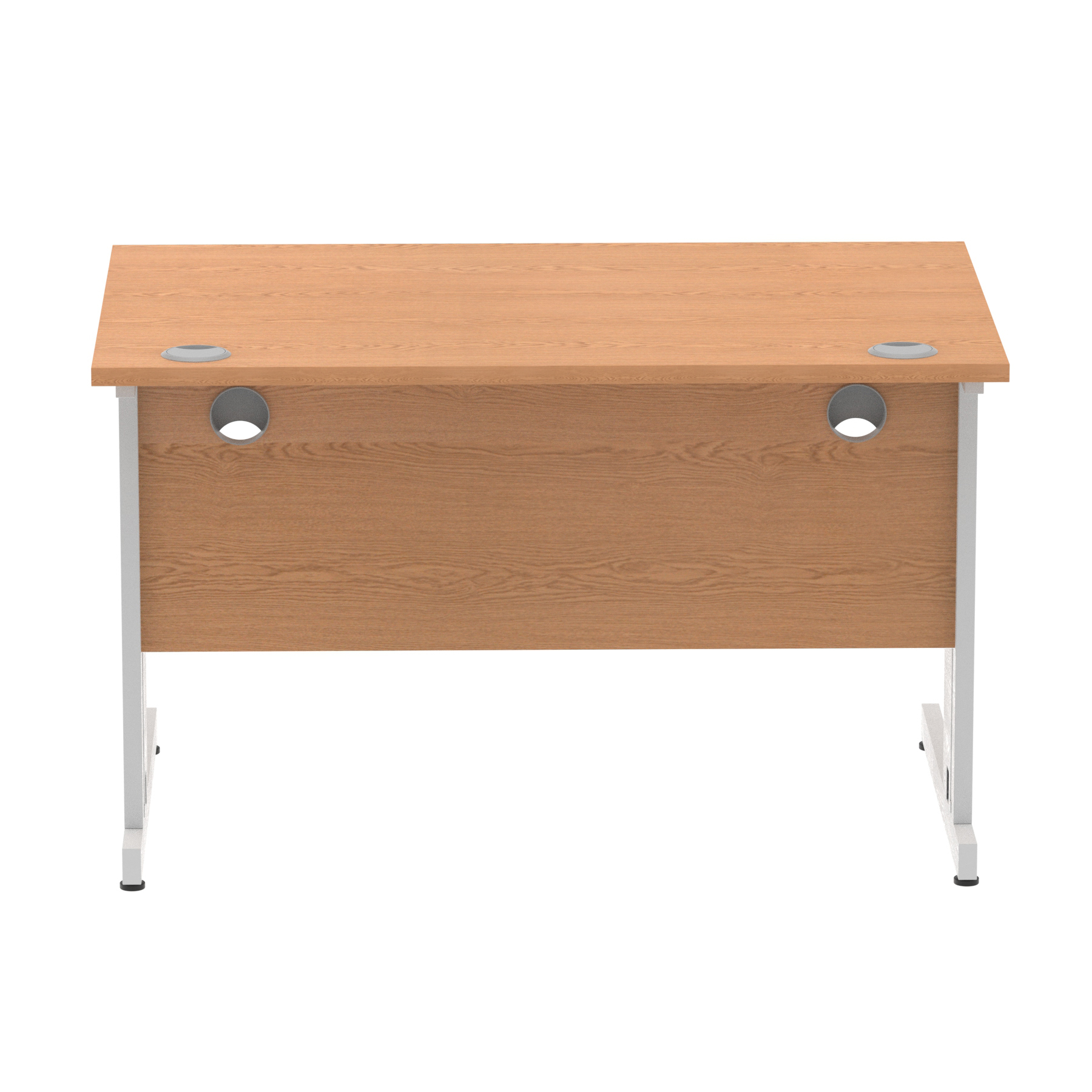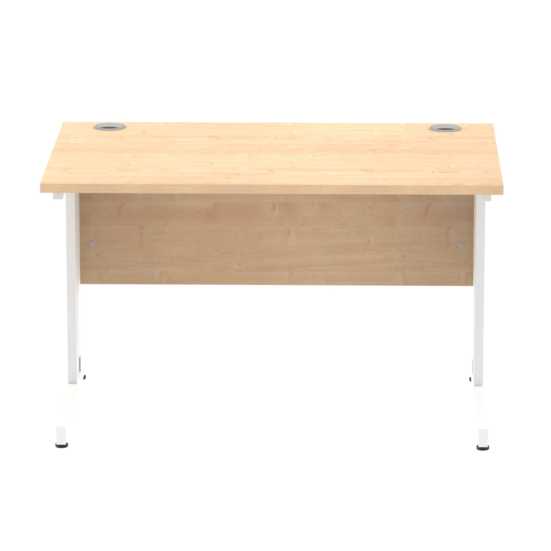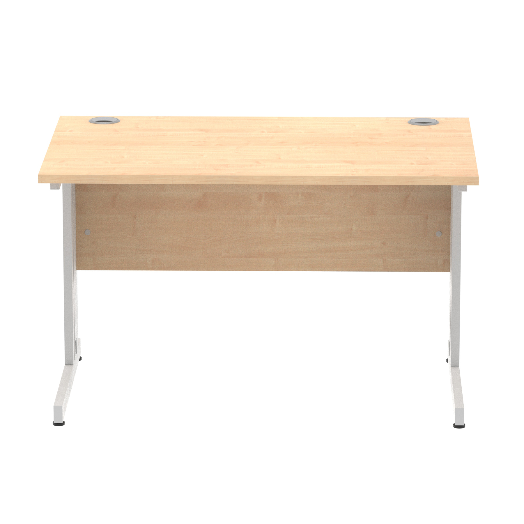 Impulse contract desk | 25mm tops | wire management panel | Heat resistant melamine finish | 18mm modesty panel | 2mm protective abs edging | Silver coated double strut legs | 2 cable ports | Height adjustable feet | Steel to steel fixings | 2 modesty panel slots | Deep set modesty panel (5″) allows for compatibility of most screen clamp fittings | Weight Capacity 135Kg