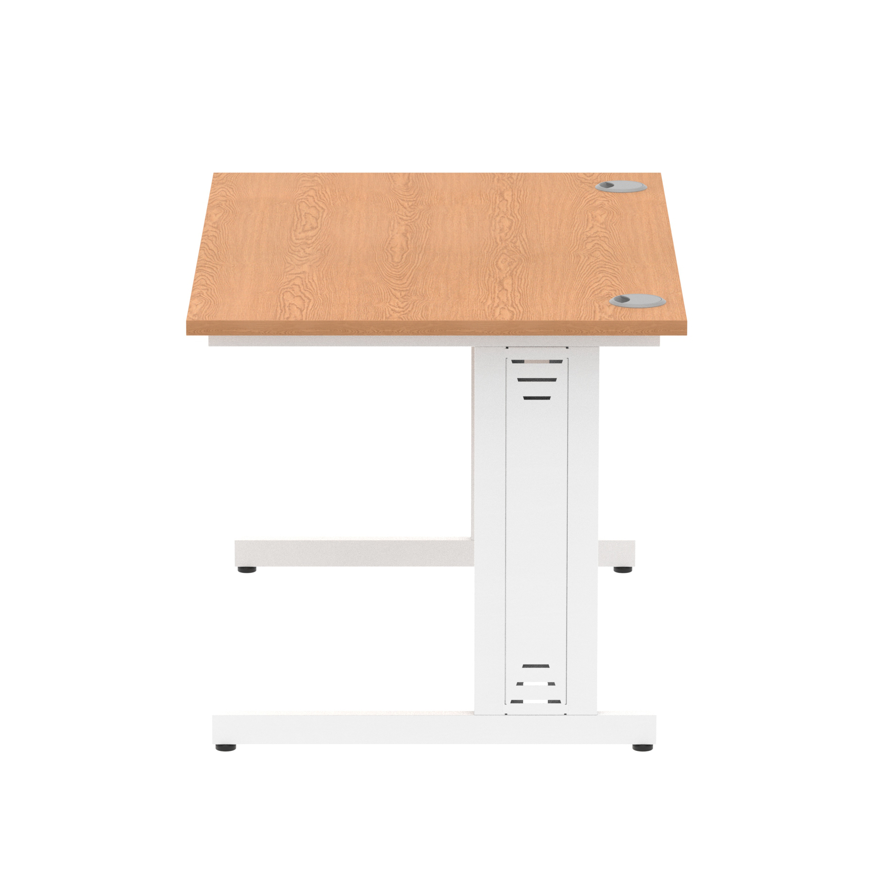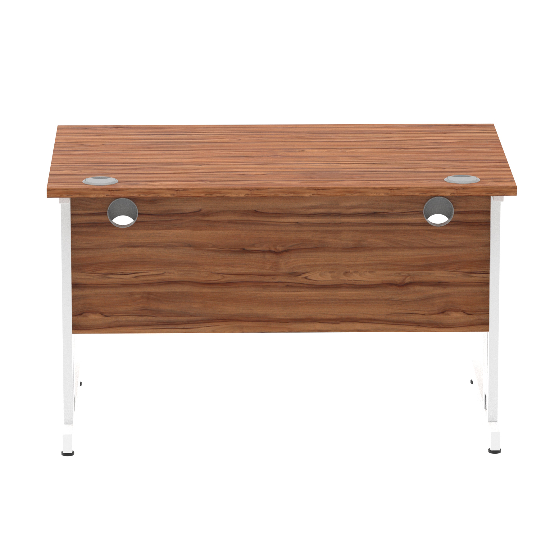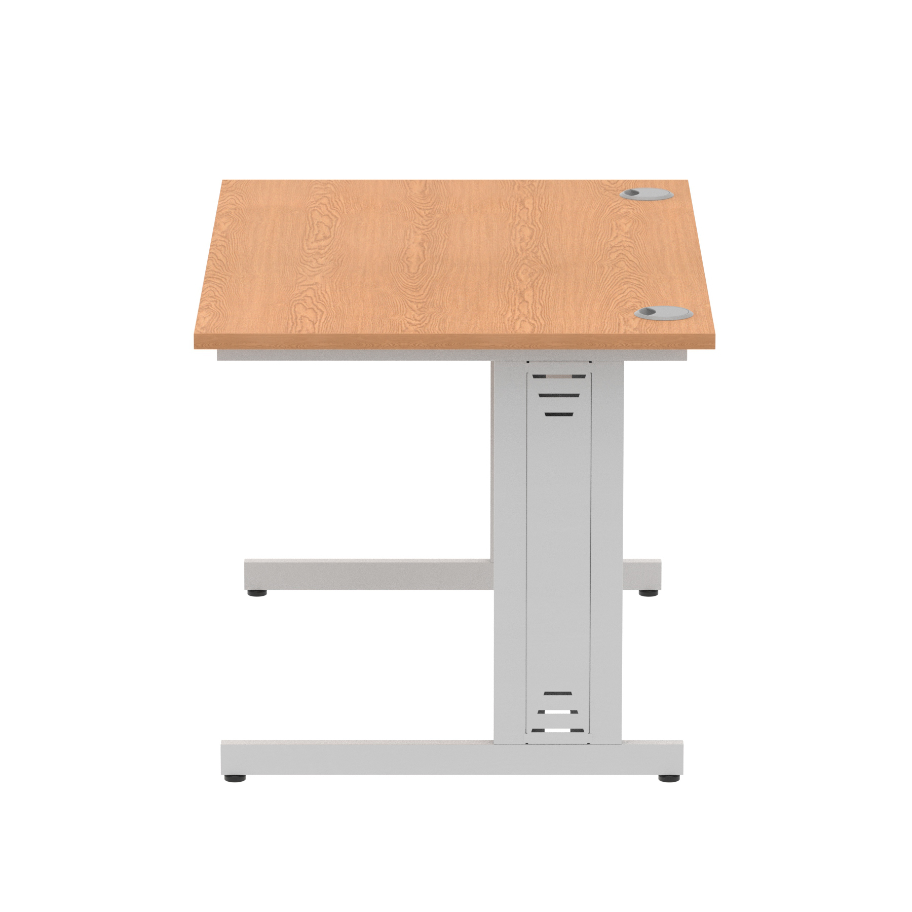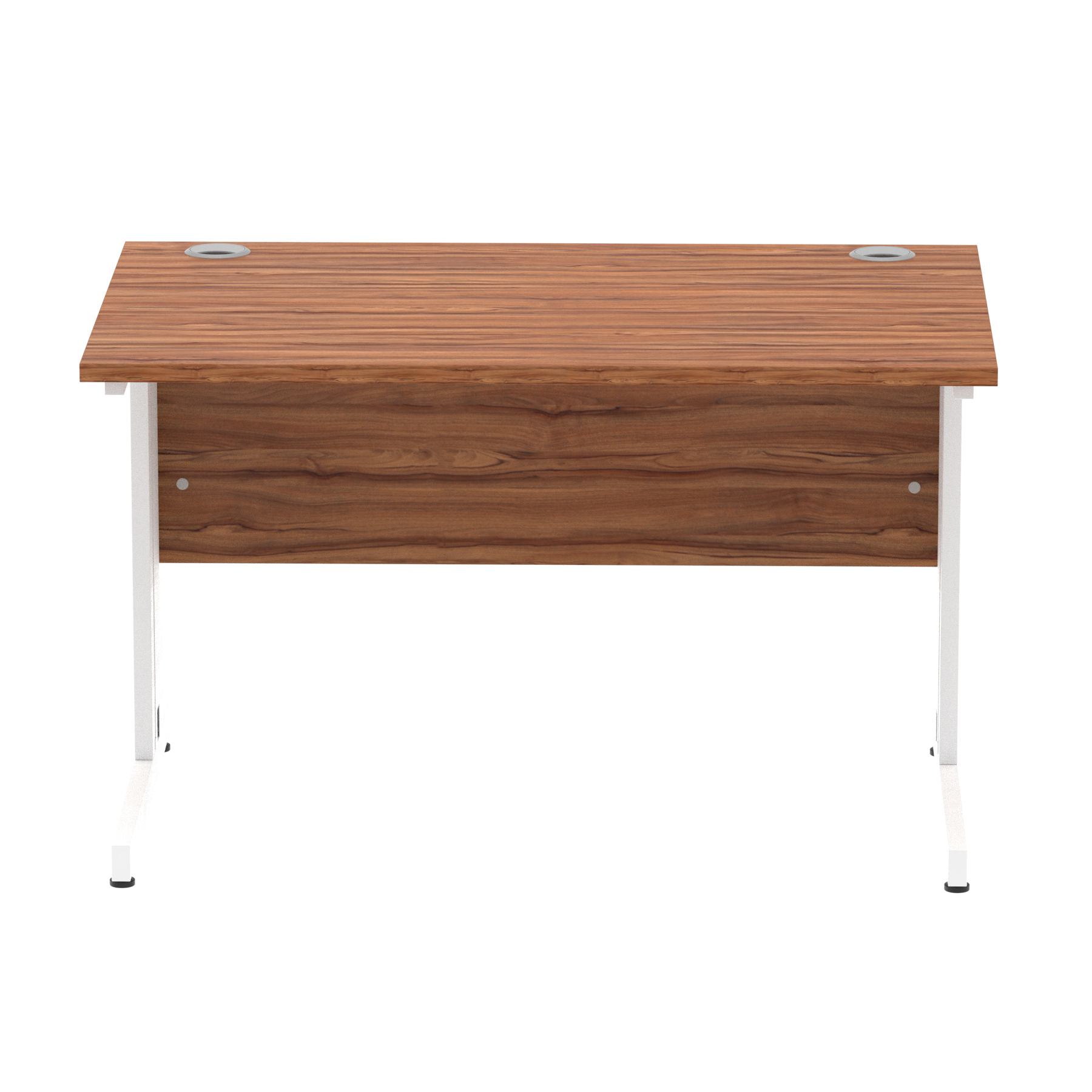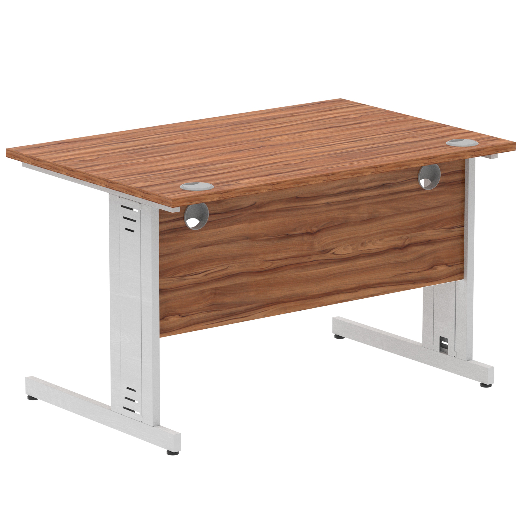 Impulse contract desk | 25mm tops | wire management panel | Heat resistant melamine finish | 18mm modesty panel | 2mm protective abs edging | Silver coated double strut legs | 2 cable ports | Height adjustable feet | Steel to steel fixings | 2 modesty panel slots | Deep set modesty panel (5″) allows for compatibility of most screen clamp fittings | Weight Capacity 135Kg