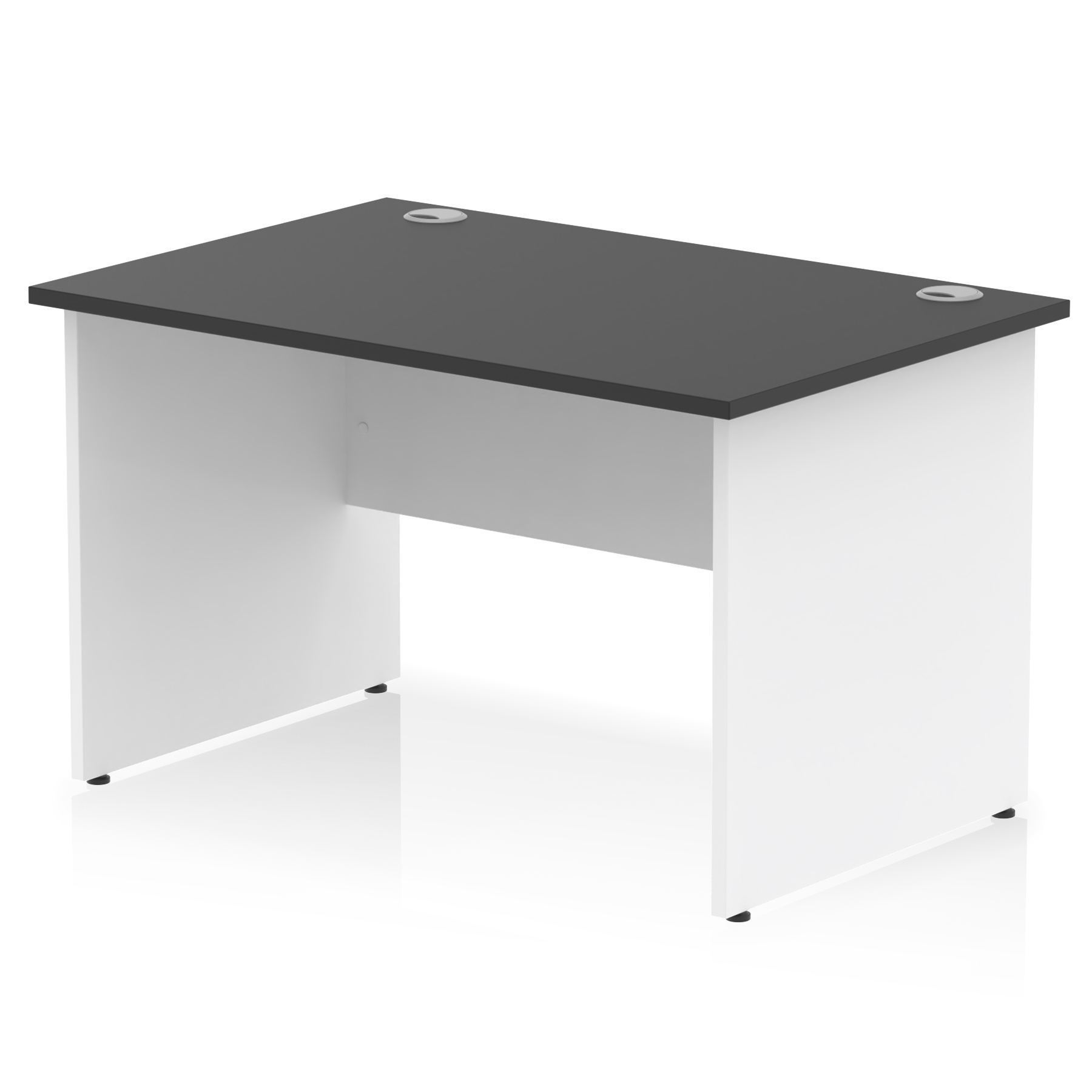 Impulse contract desk | 25mm tops | Heat resistant melamine finish | 18mm modesty panel | 2mm protective abs edging | Matching wood panel end legs | 2 cable ports | Height adjustable feet | Steel to steel fixings | 2 modesty panel slots | Deep set modesty panel (5″) allows for compatibility of most screen clamp fittings | Weight Capacity 135Kg