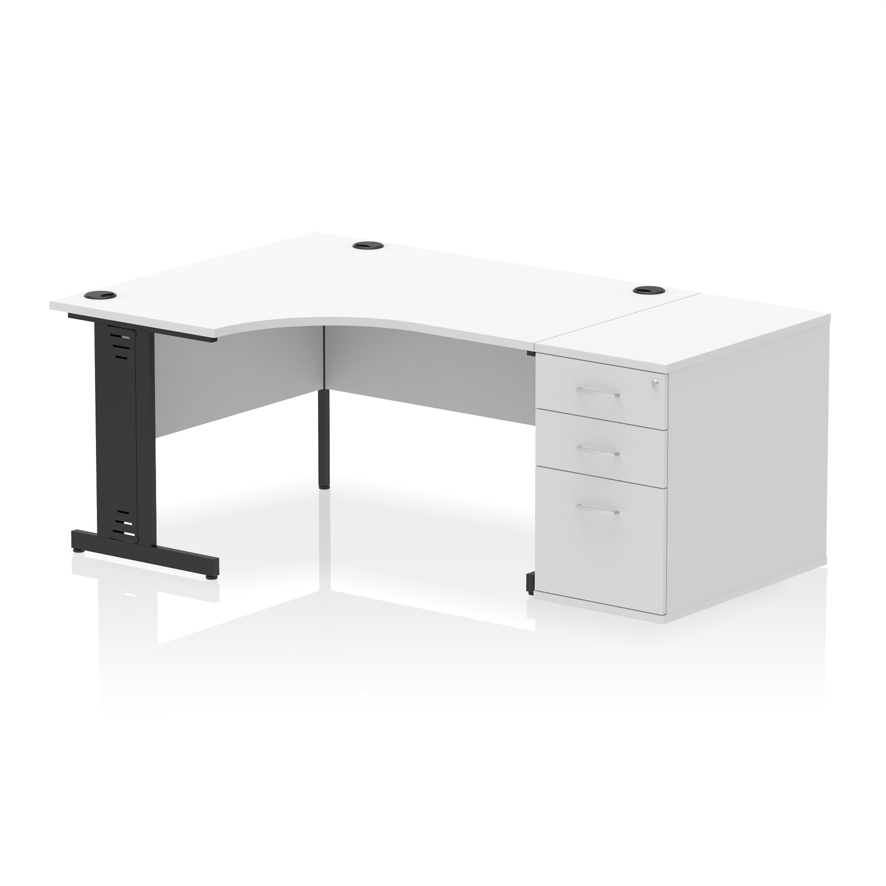 • Impulse contract workstation • 25mm tops • Desk and pedestal combined • Heat resistant melamine finish • 18mm modesty panel • 2mm protective abs edging • Double strut legs • Multiple cable ports • Height adjustable feet • Steel to steel fixings • Modesty panel slots wire slots • Deep set modesty panel (5″) allows for compatibility of most screen clamp fittings