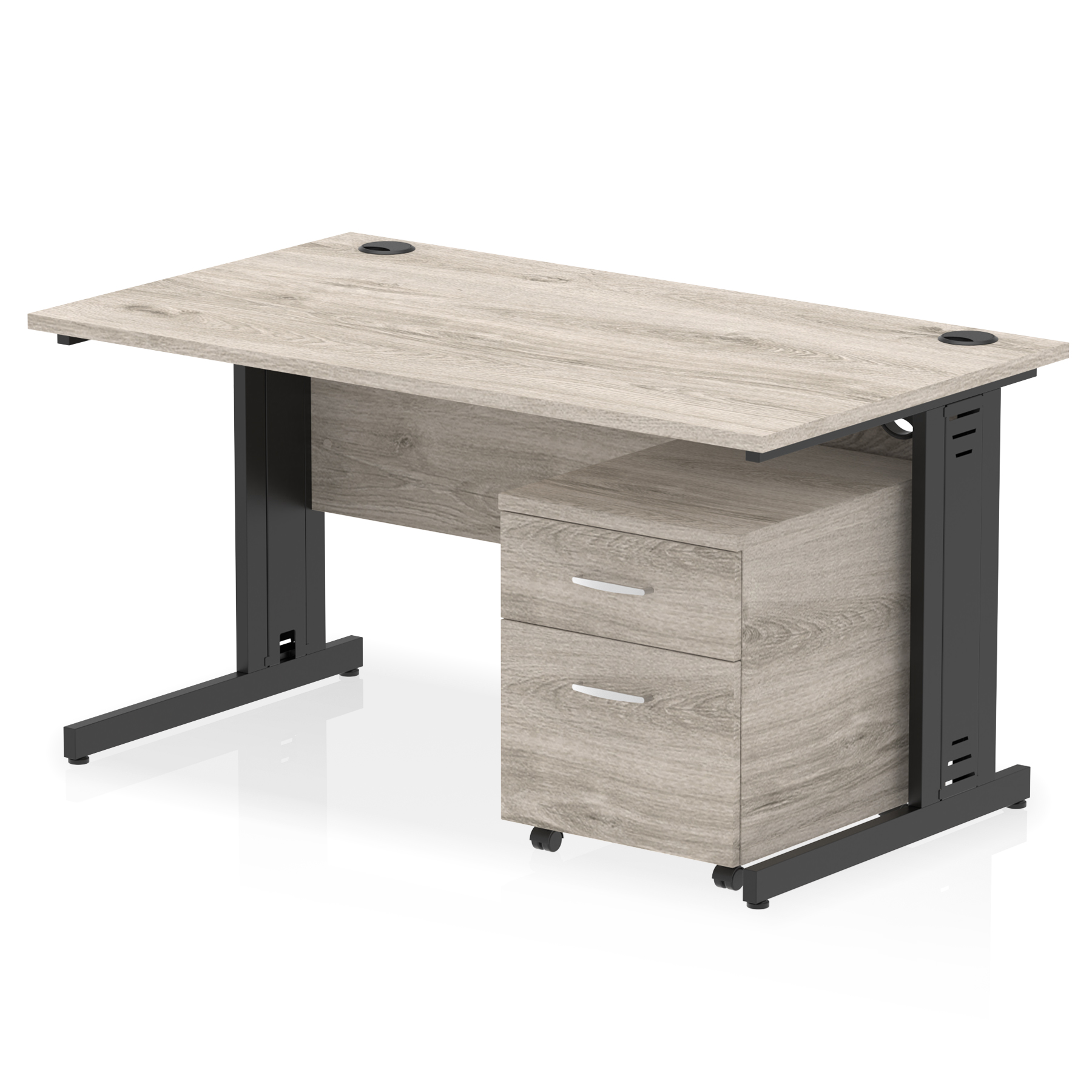 Impulse 1400mm Cable Managed Straight Desk With Mobile Pedestal