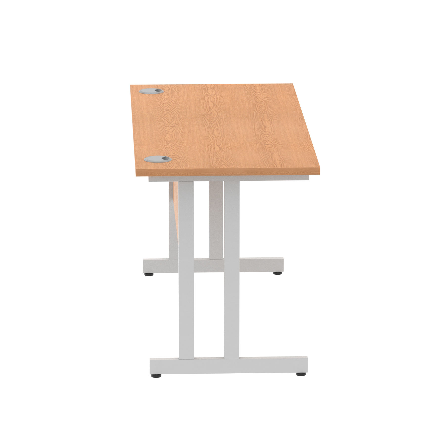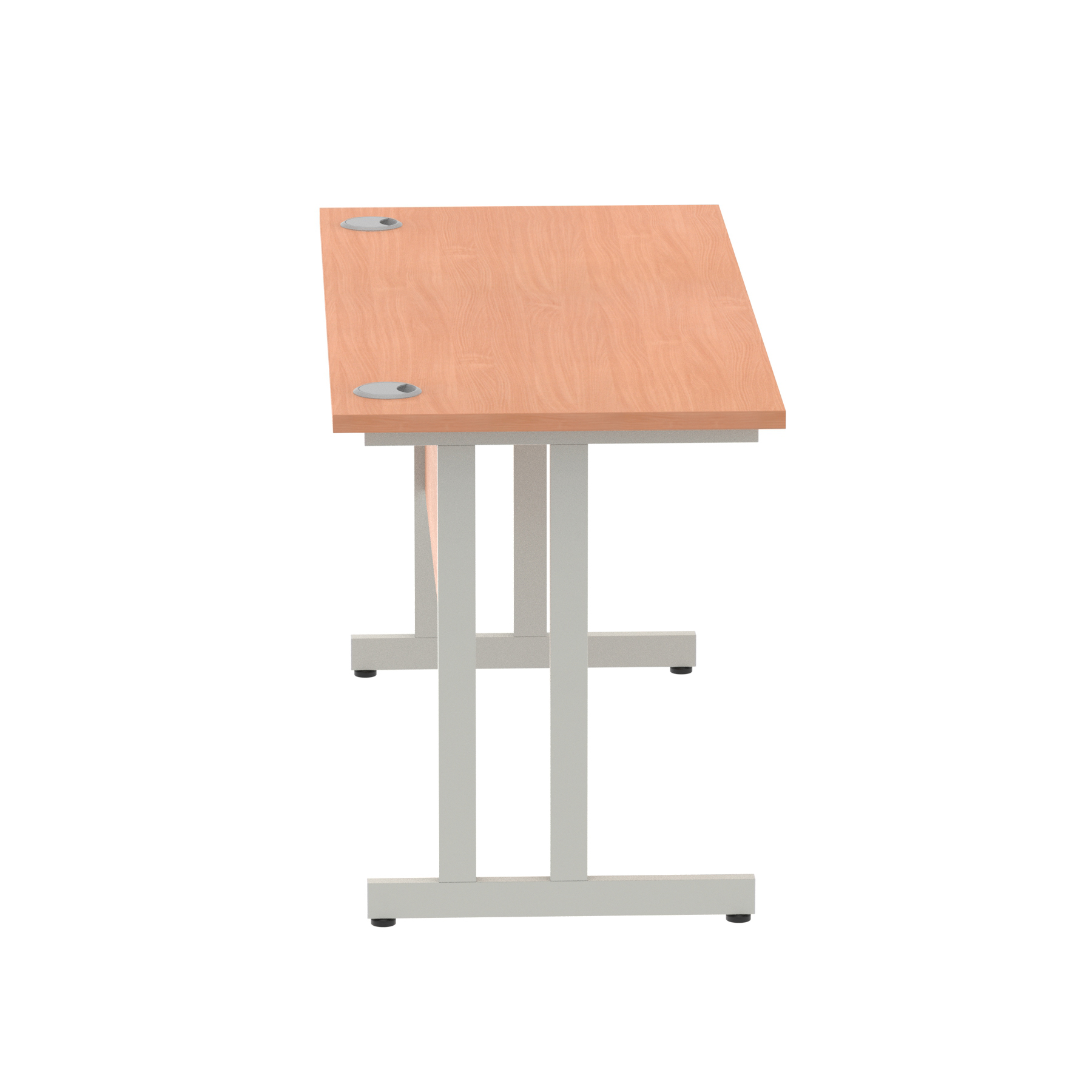 Impulse contract desk | 25mm tops | Heat resistant melamine finish | 18mm modesty panels | 2mm protective abs edging | Silver coated double strut legs | 2 cable ports | Height adjustable feet | Steel to steel fixings | 2 modesty panels slots |Deep set modesty panel (5″) allows for compatibility of most screen clamp fittings | Weight Capacity 135Kg