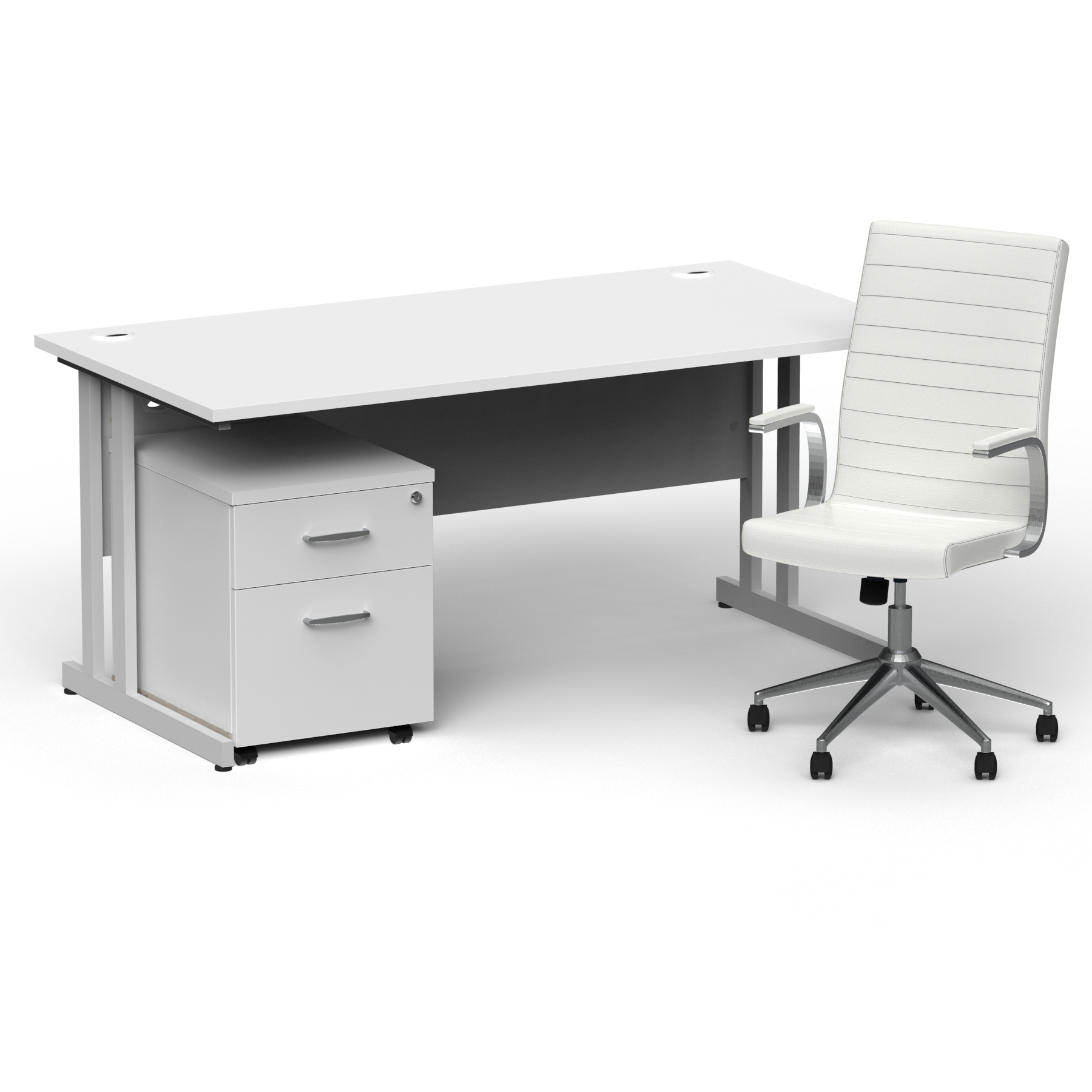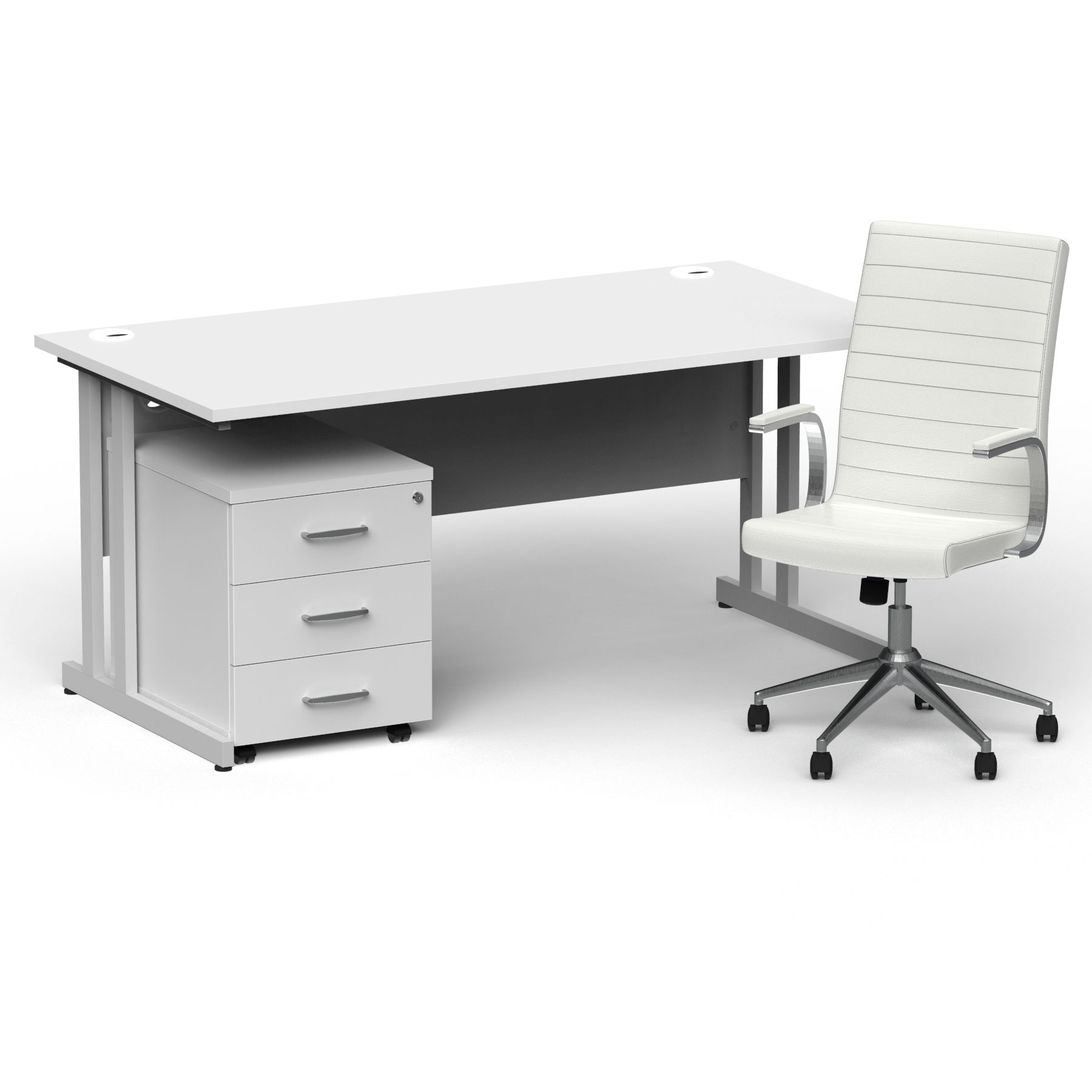 Impulse 1600mm Cantilever Straight Desk With Mobile Pedestal and Ezra White Executive Chair