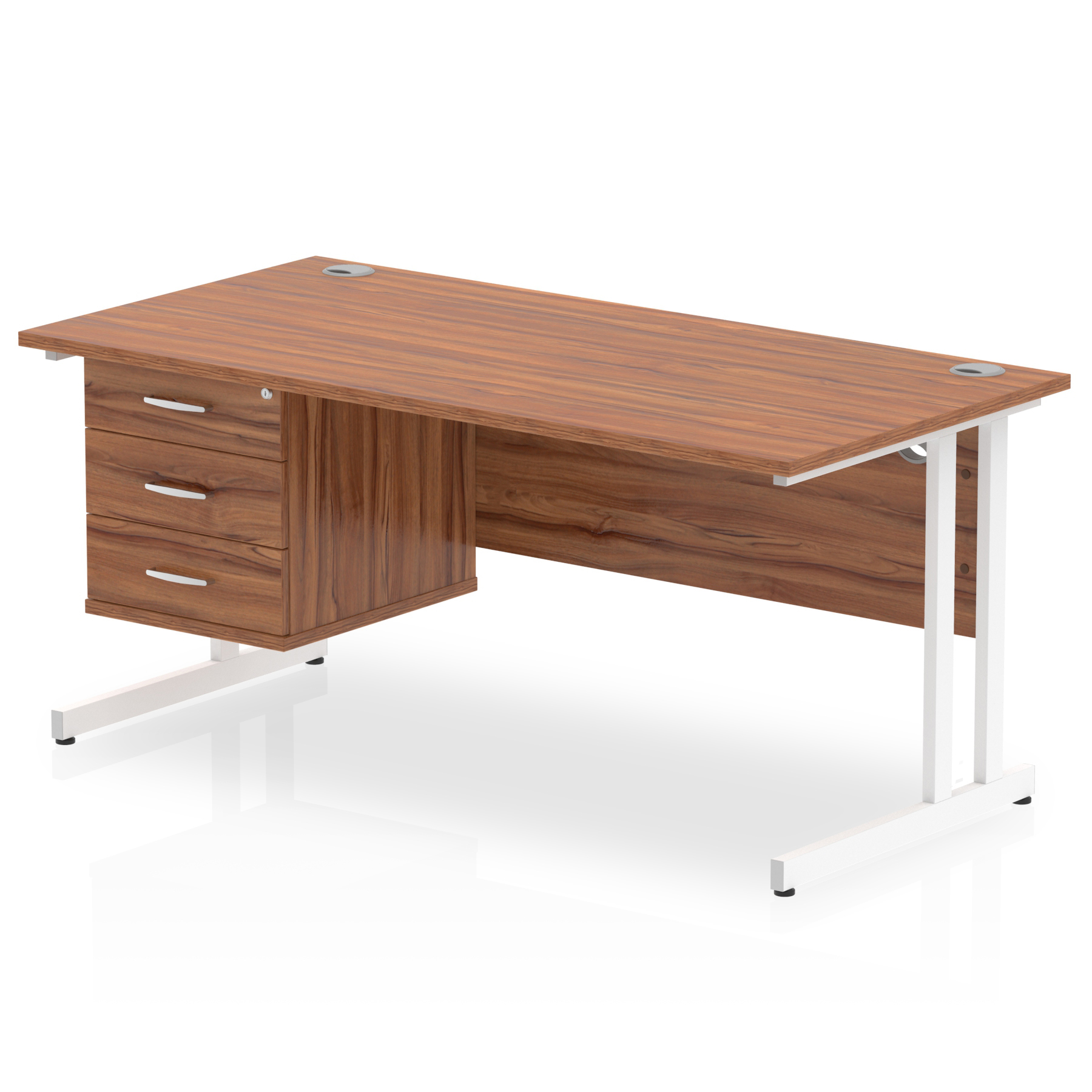 • Impulse contract 1600 wide desk • 25mm tops • Heat resistant Beech melamine finish • 18mm modesty panels • 2mm protective abs edging • White coated double strut legs • 2 cable ports • Height adjustable feet • Steel to steel fixings • 2 modesty panels slots • Deep set modesty panel (5”) allows for compatibility of most screen clamp fittings • Fixed pedestal
