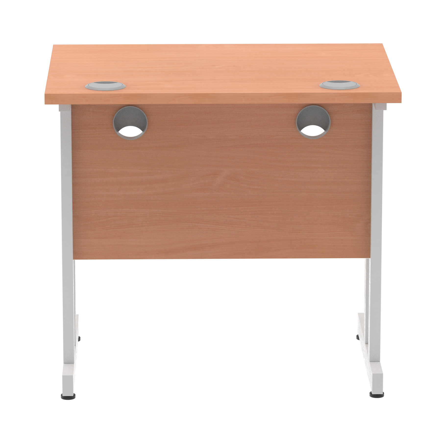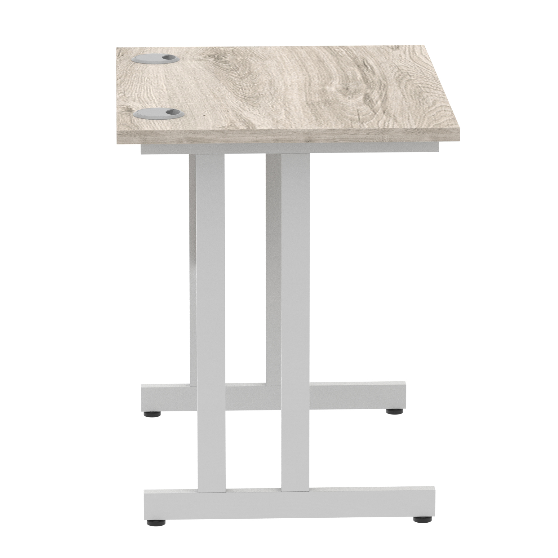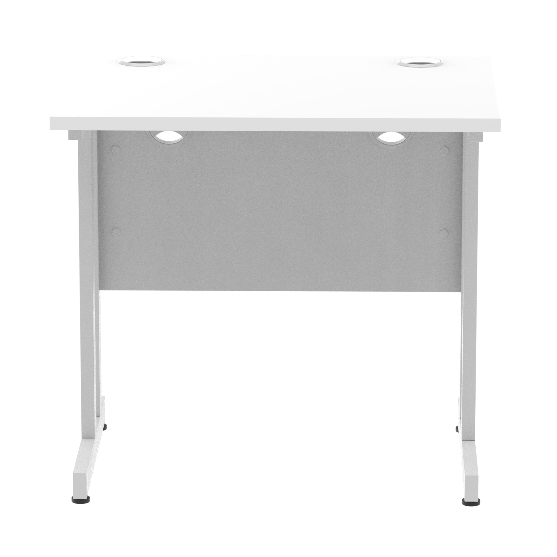 Impulse contract desk | 25mm tops | Heat resistant melamine finish | 18mm modesty panels | 2mm protective abs edging | Silver coated double strut legs | 2 cable ports | Height adjustable feet | Steel to steel fixings | 2 modesty panels slots| Deep set modesty panel (5″) allows for compatibility of most screen clamp fittings | Weight Capacity 135Kg