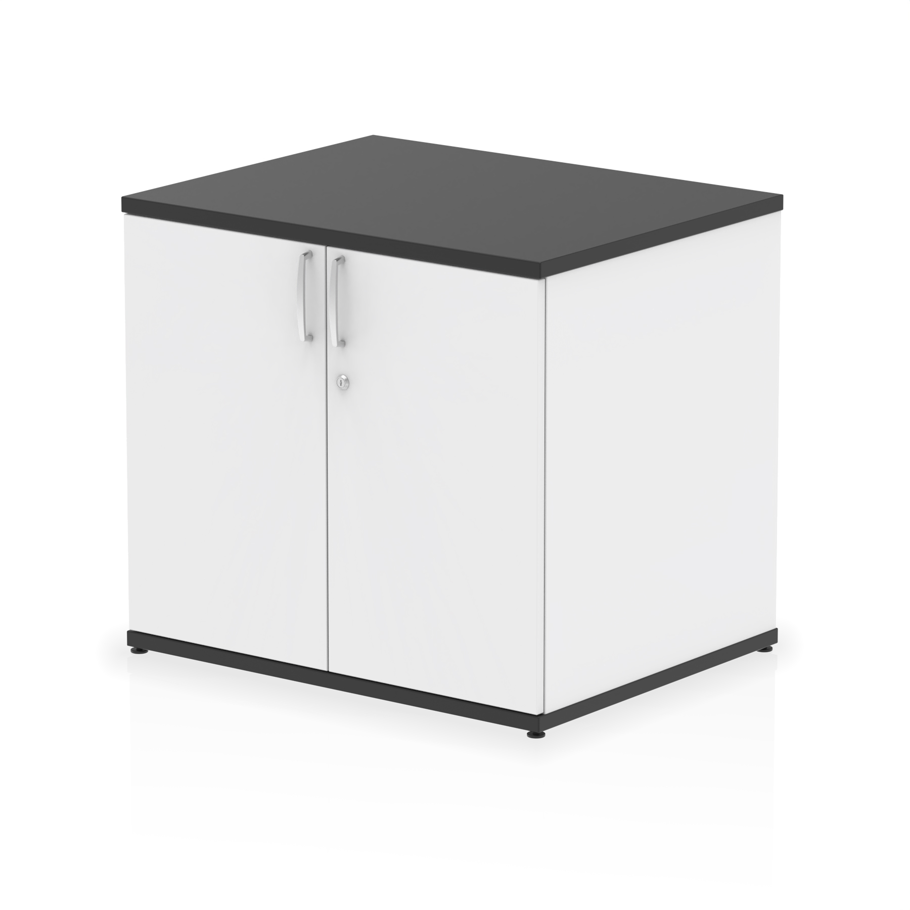 Impulse 800 wide cupboard | 25mm thick wood finish | Fits on end of 600 deep desk | 2mm abs protective edges | Steel to steel fixings | 18mm side walls | Adjustable shelf | Adjustable feet | Heat resistant melamine finish | Solid back board | Matching doors | Weight Capacity: 20Kg per shelf