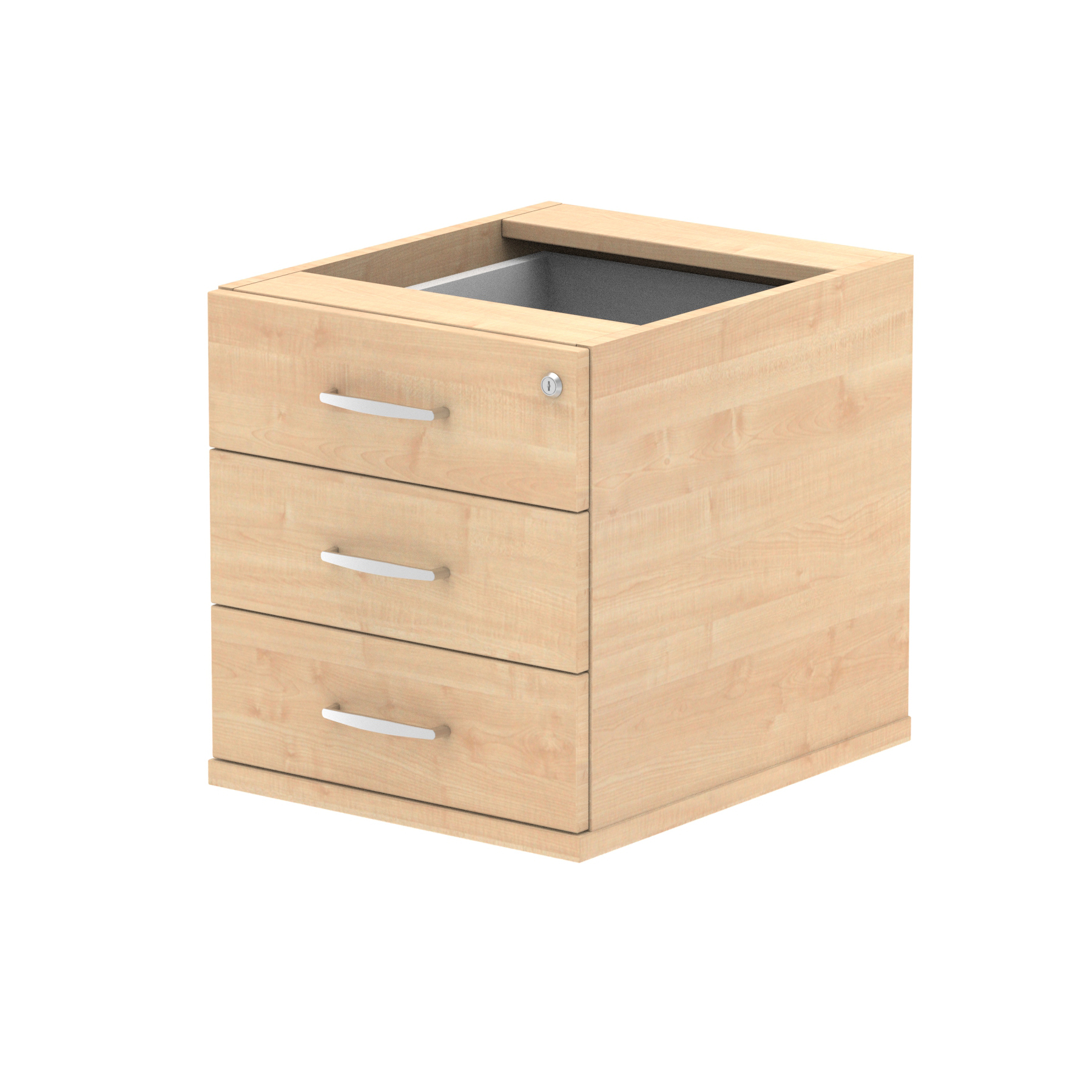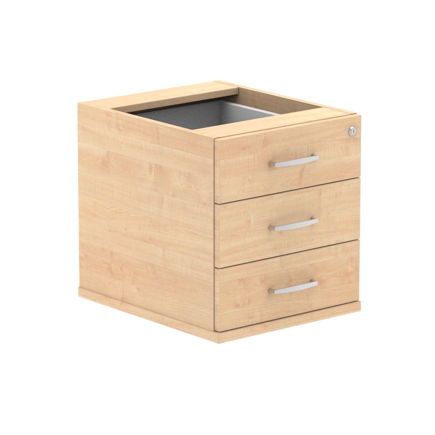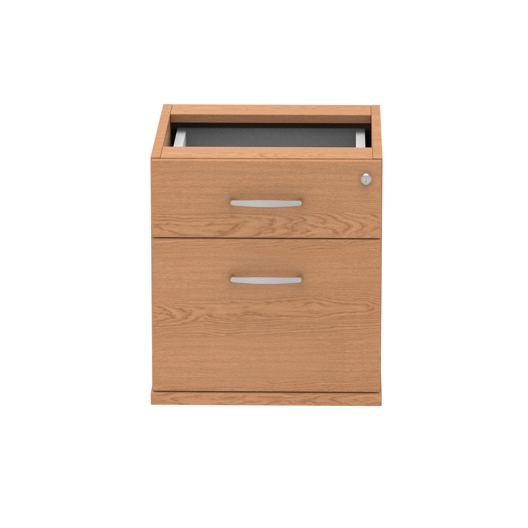 Impulse fixed pedestal | 25mm top | Full 18mm back board | 2mm abs protective edges | Steel handles | Solid box drawer construction | Fits A4 or foolscap filing (Filing rails only available on the 2 drawer variant) | Steel to steel fixings | Lockable drawers | Heat resistant Beech melamine finish