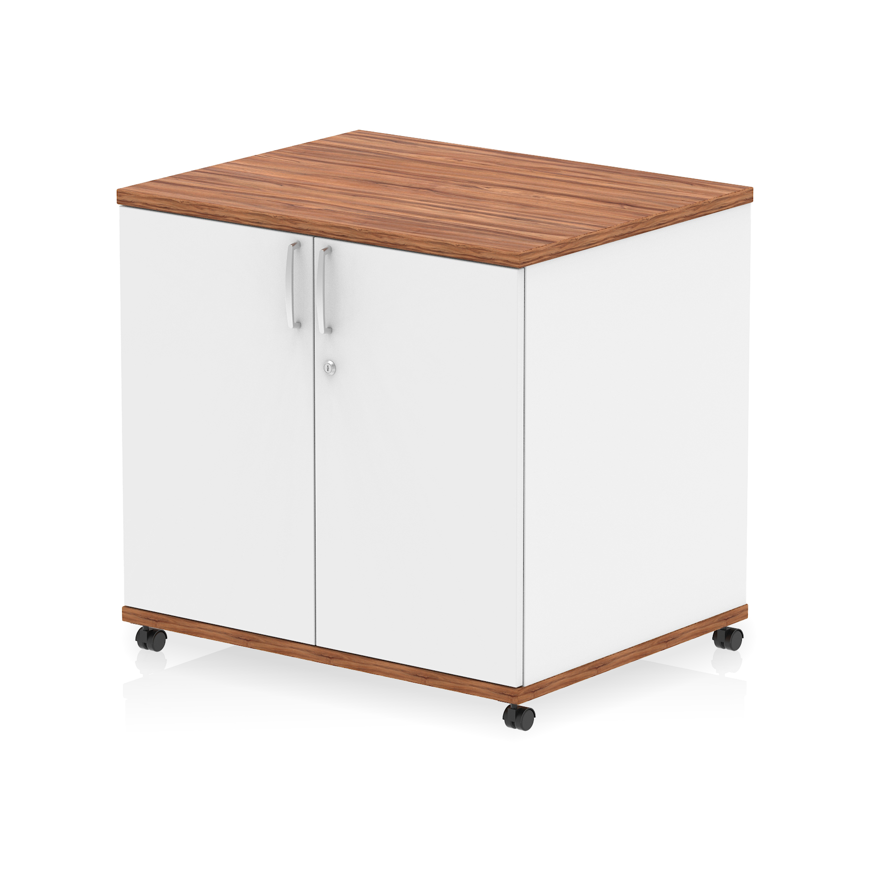 • Impulse 800 wide cupboard • 25mm thick wood finish • Fits on end of 600 deep desk • 2mm abs protective edges • Steel to steel fixings • 18mm side walls • Adjustable shelf • Mobile castors • Heat resistant melamine finish • Solid back board • Matching doors • Weight Capacity: 20Kg per shelf