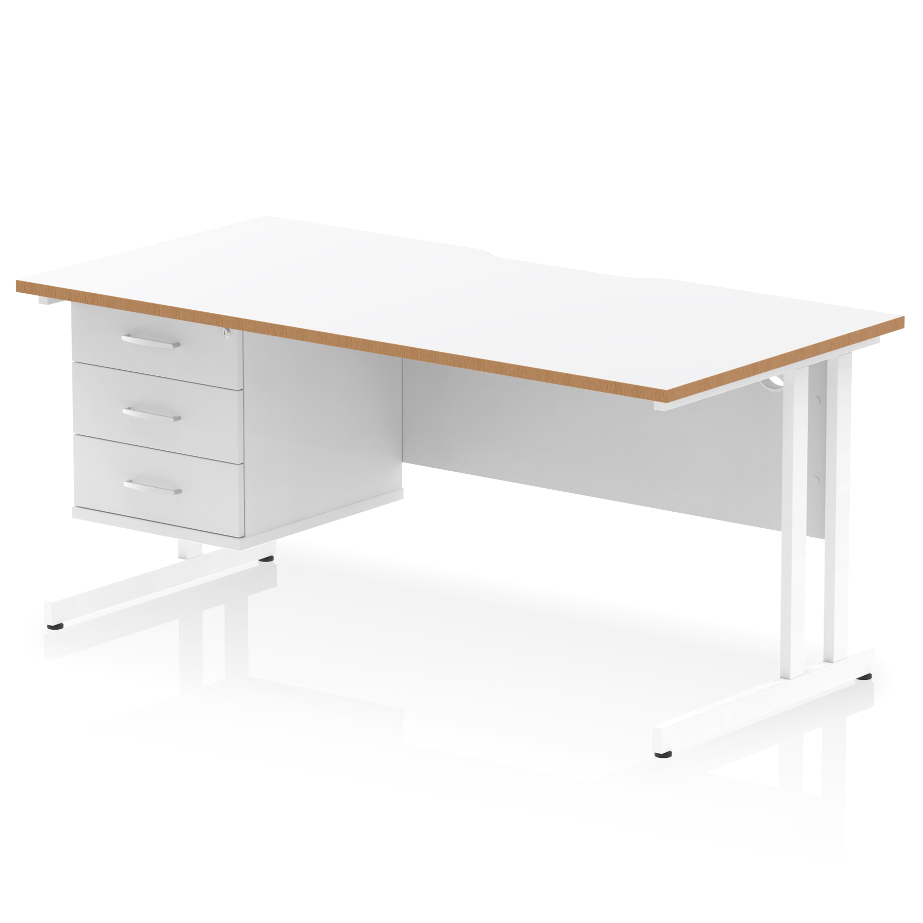 Impulse Scalloped Edge 1600mm Cantilever Straight Desk With Single Fixed Pedestal