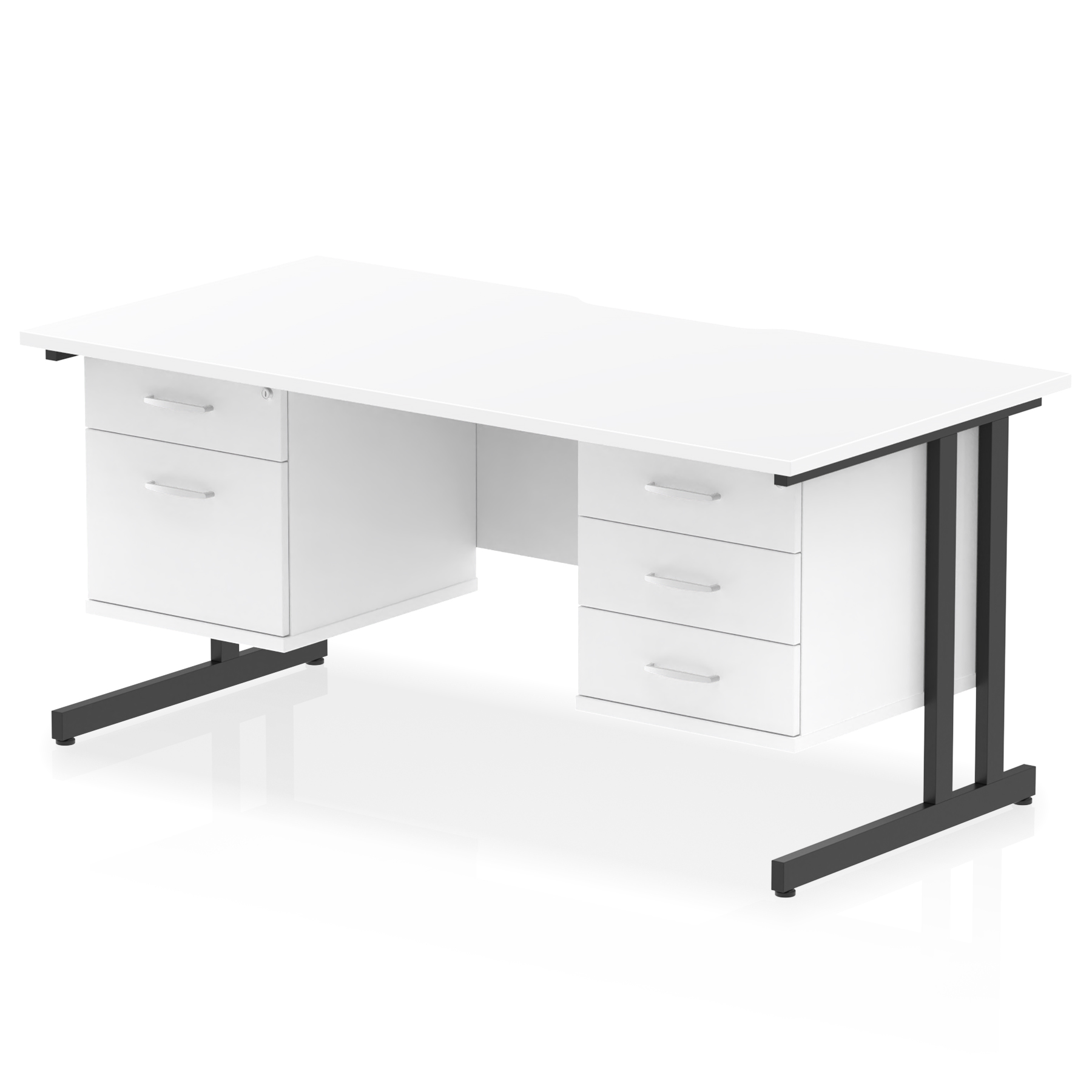 Impulse Scalloped Edge 1600mm Cantilever Straight Desk With Two Fixed Pedestal