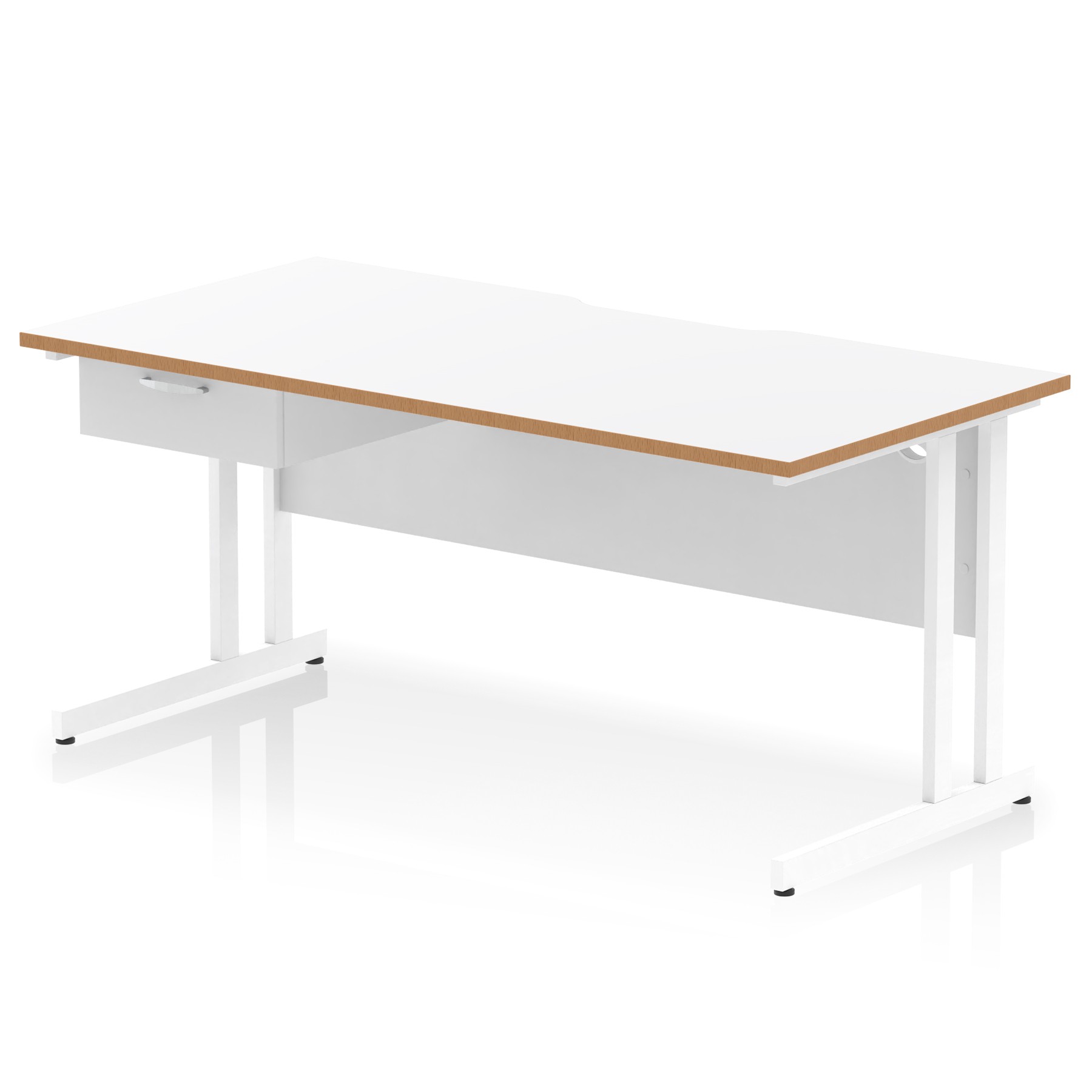 Impulse Scalloped Edge Cantilever Straight Desk With Single One Drawer Fixed Pedestal
