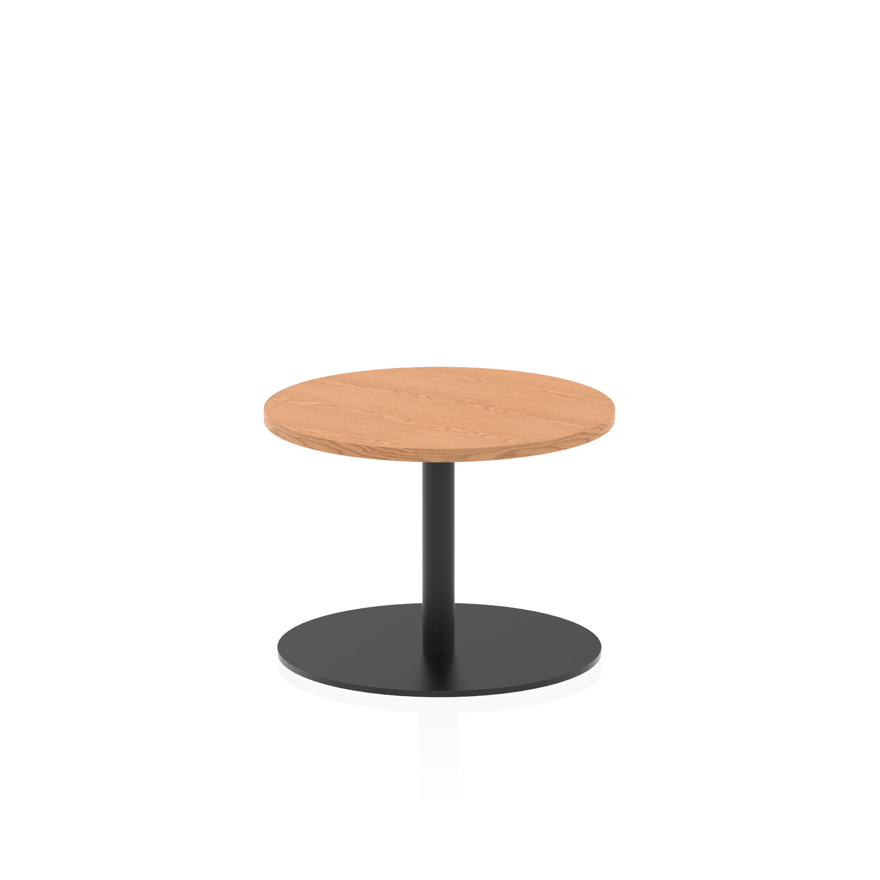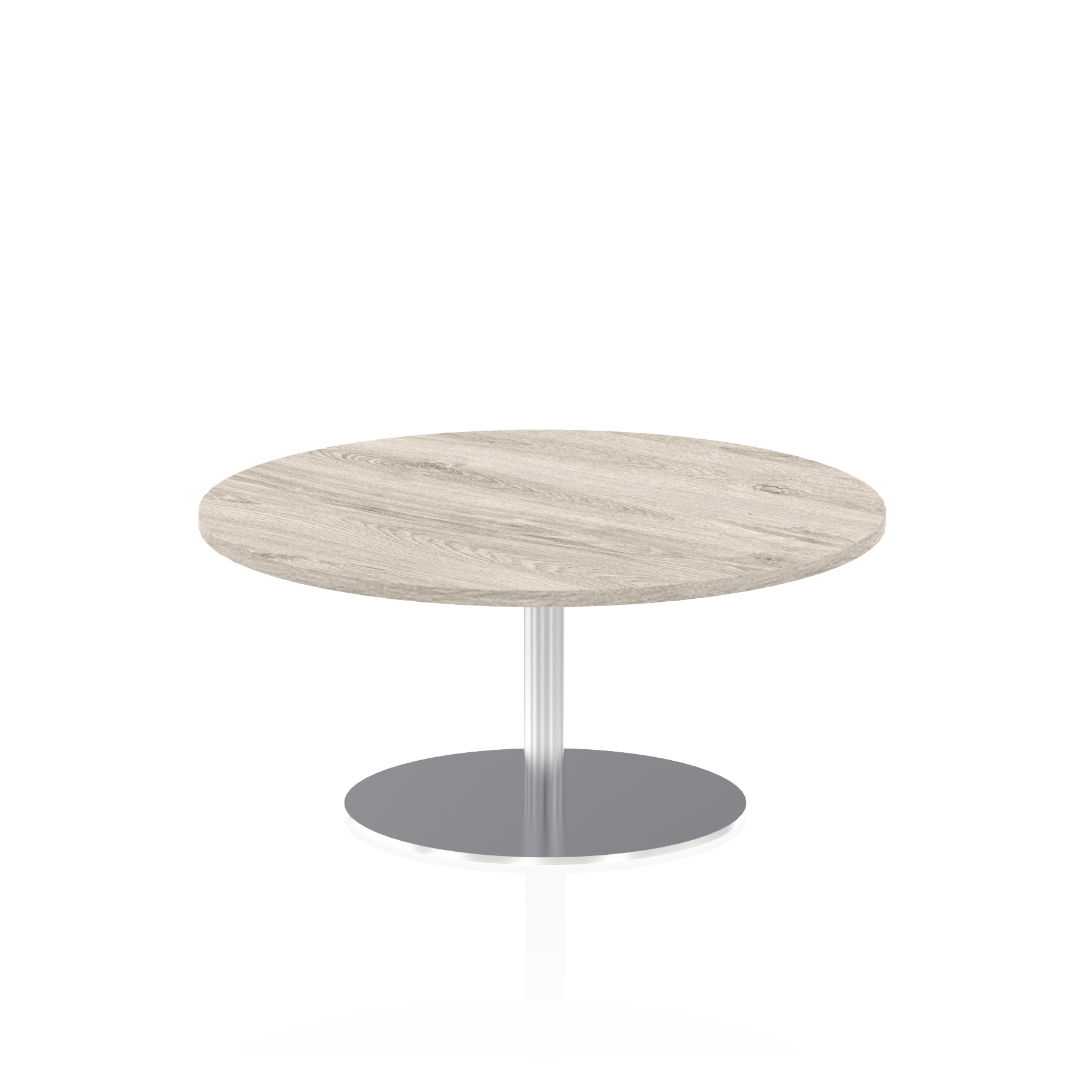 25mm thick desk top profile | Brushed stainless steel effect circular base (580mm diameter) | Brushed stainless steel pillars (76mm diameter) | Weighted base provides stability | Two part bolted frame system
