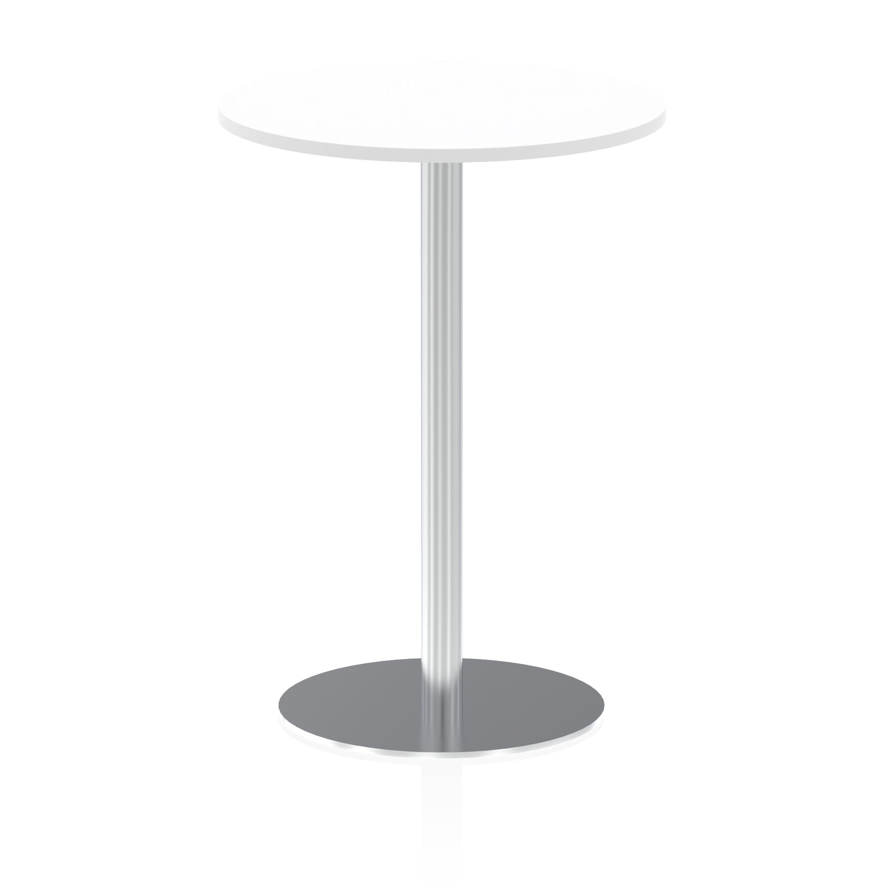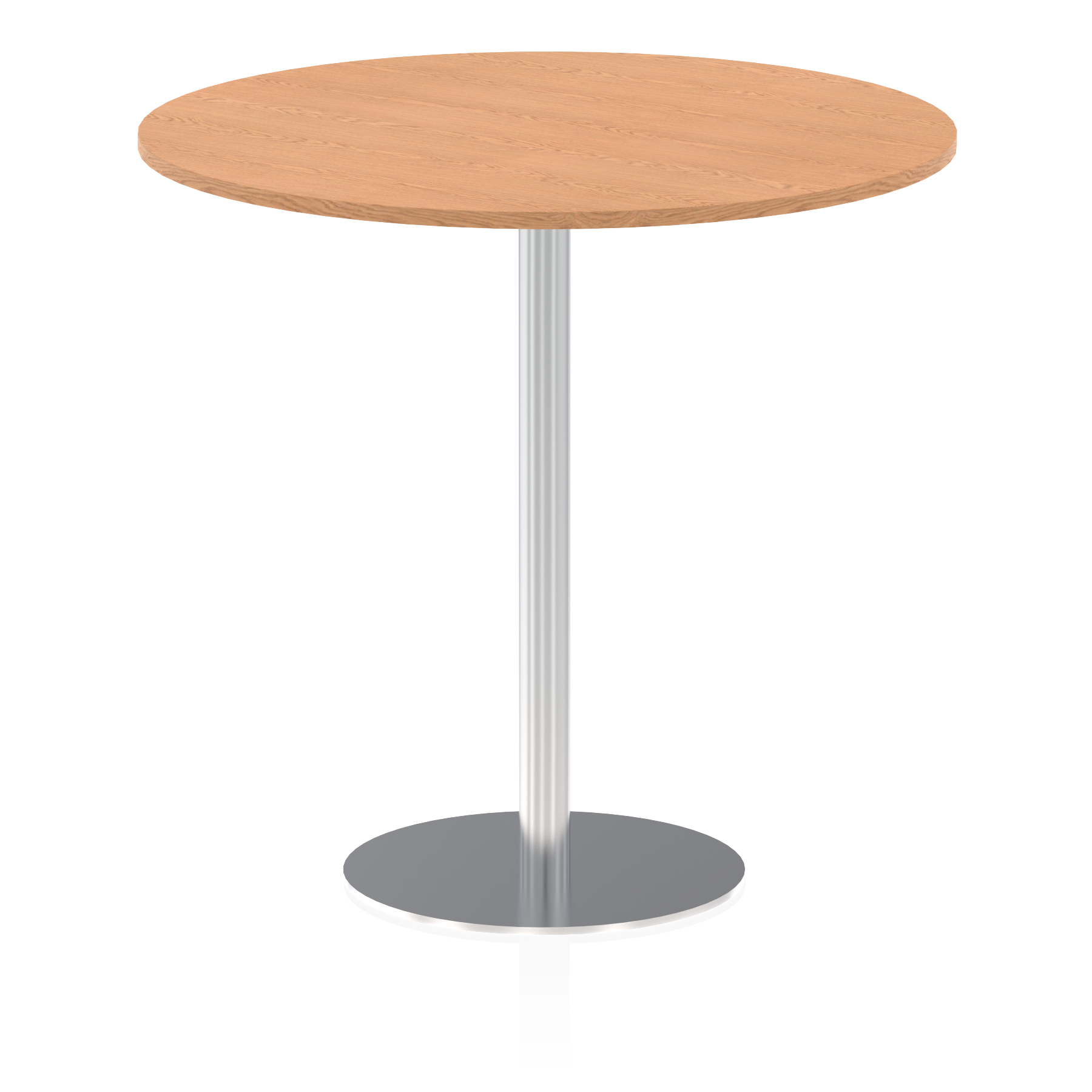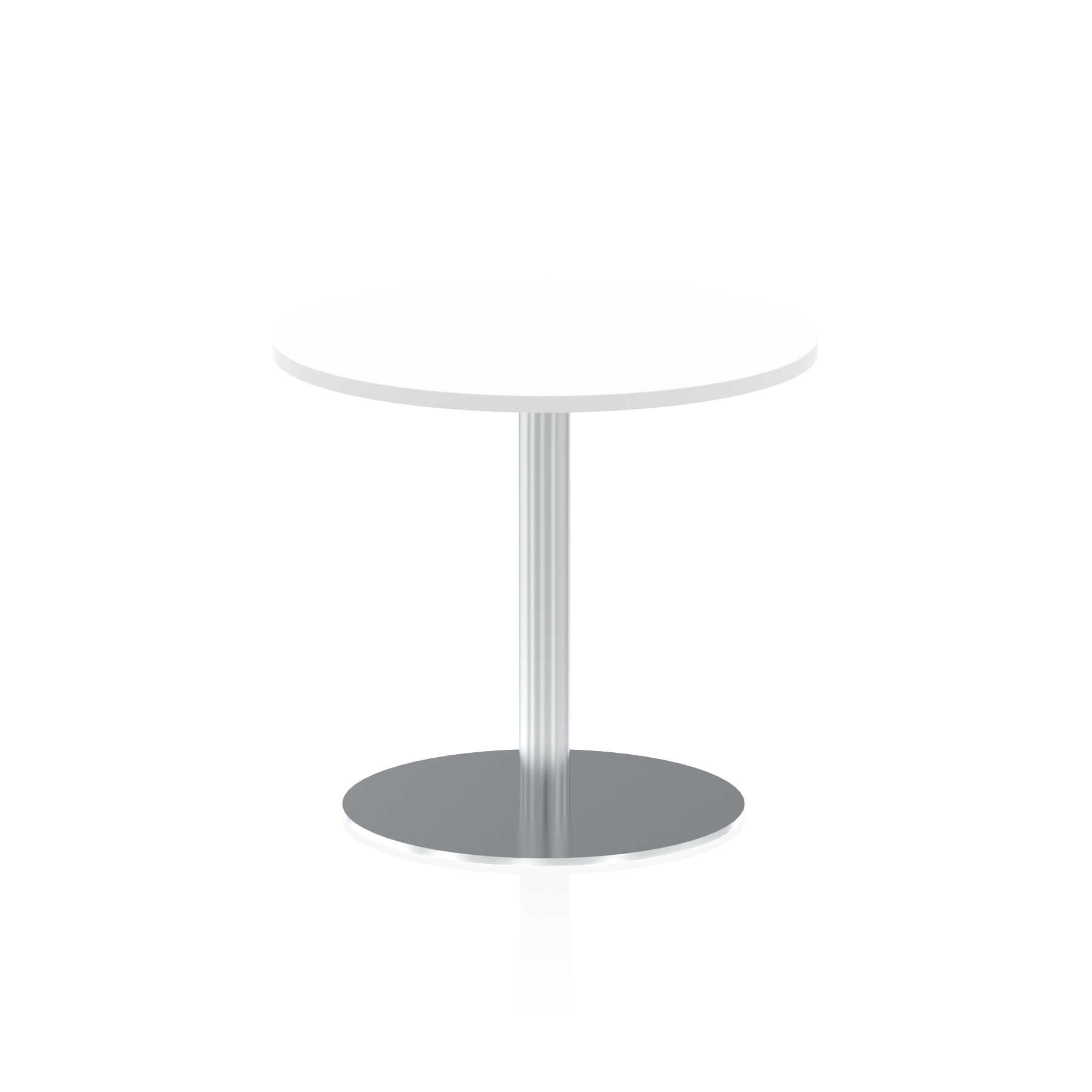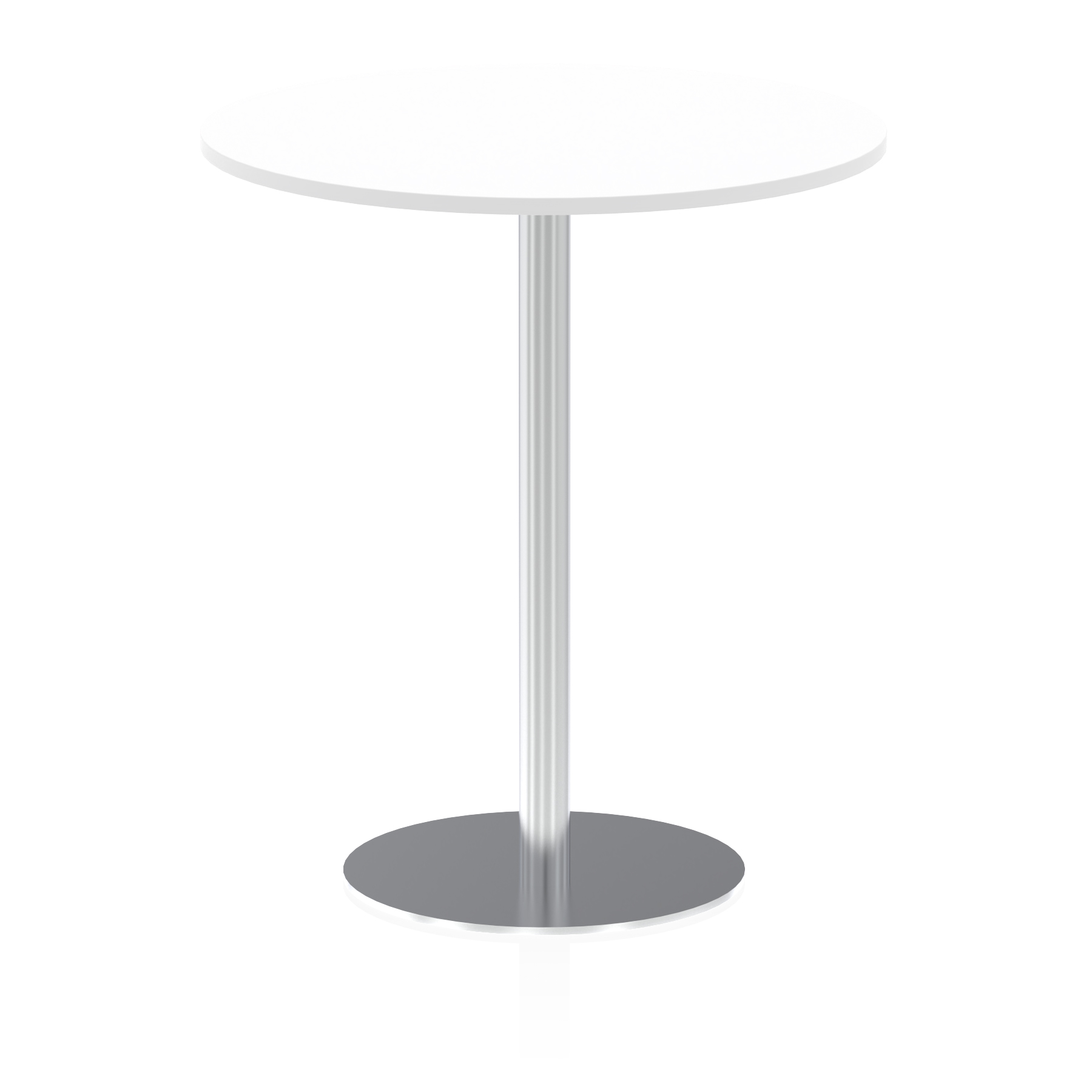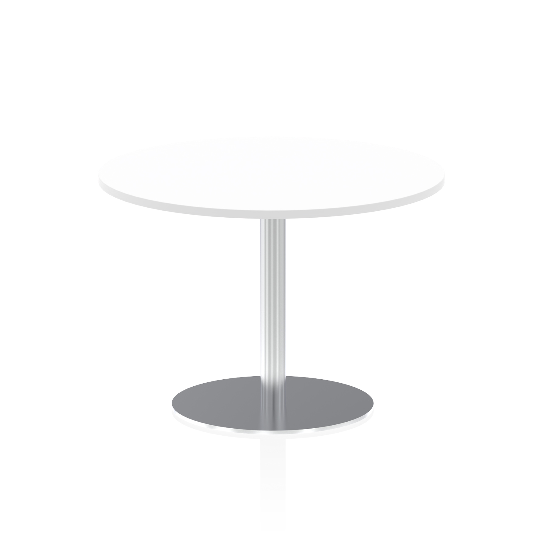 25mm thick desk top profile | Brushed stainless steel effect circular base (580mm diameter) | Brushed stainless steel pillars (76mm diameter) | Weighted base provides stability | Two part bolted frame system