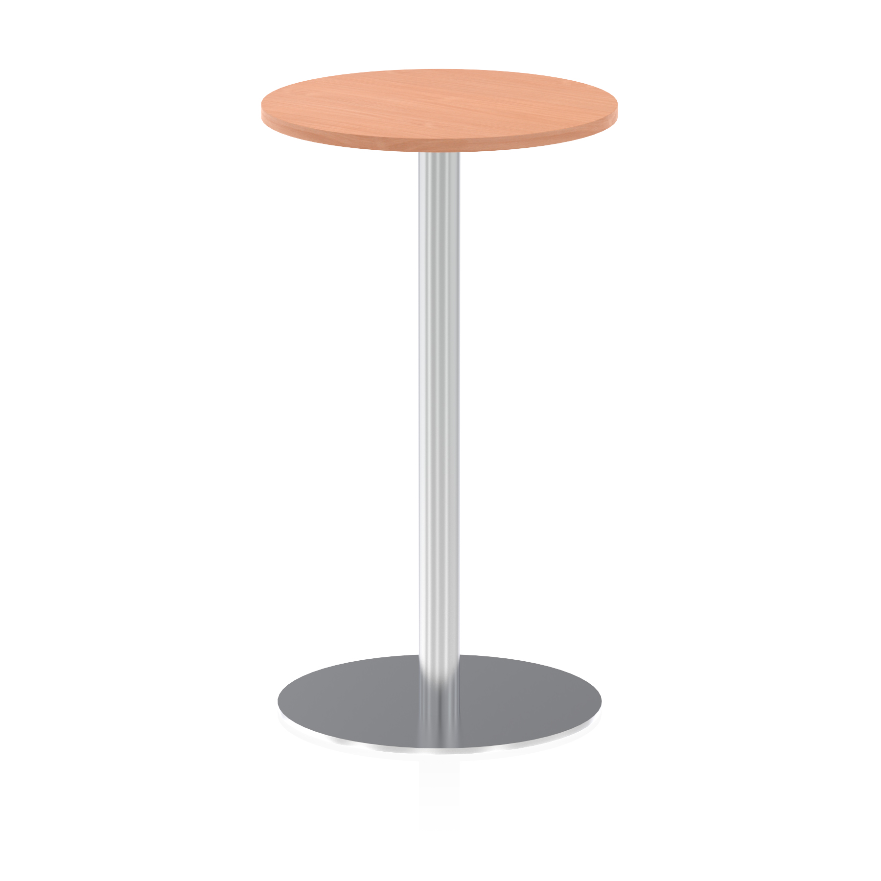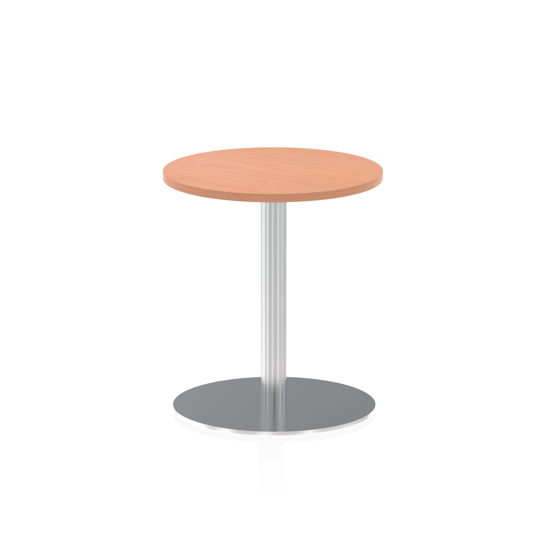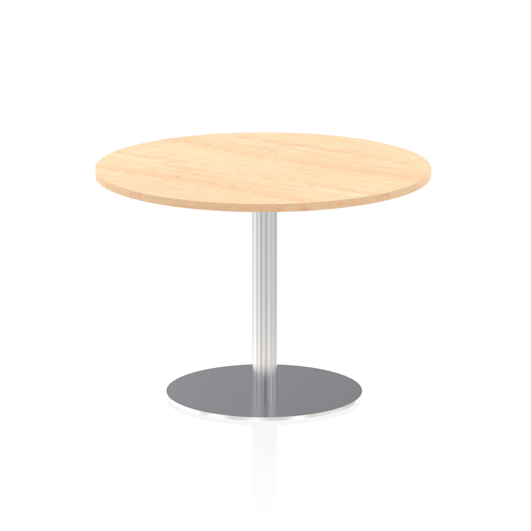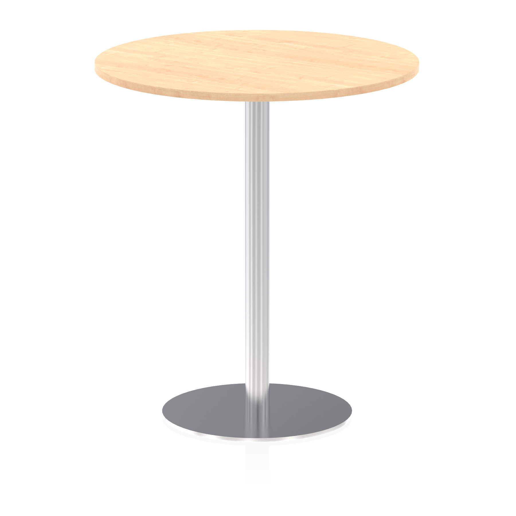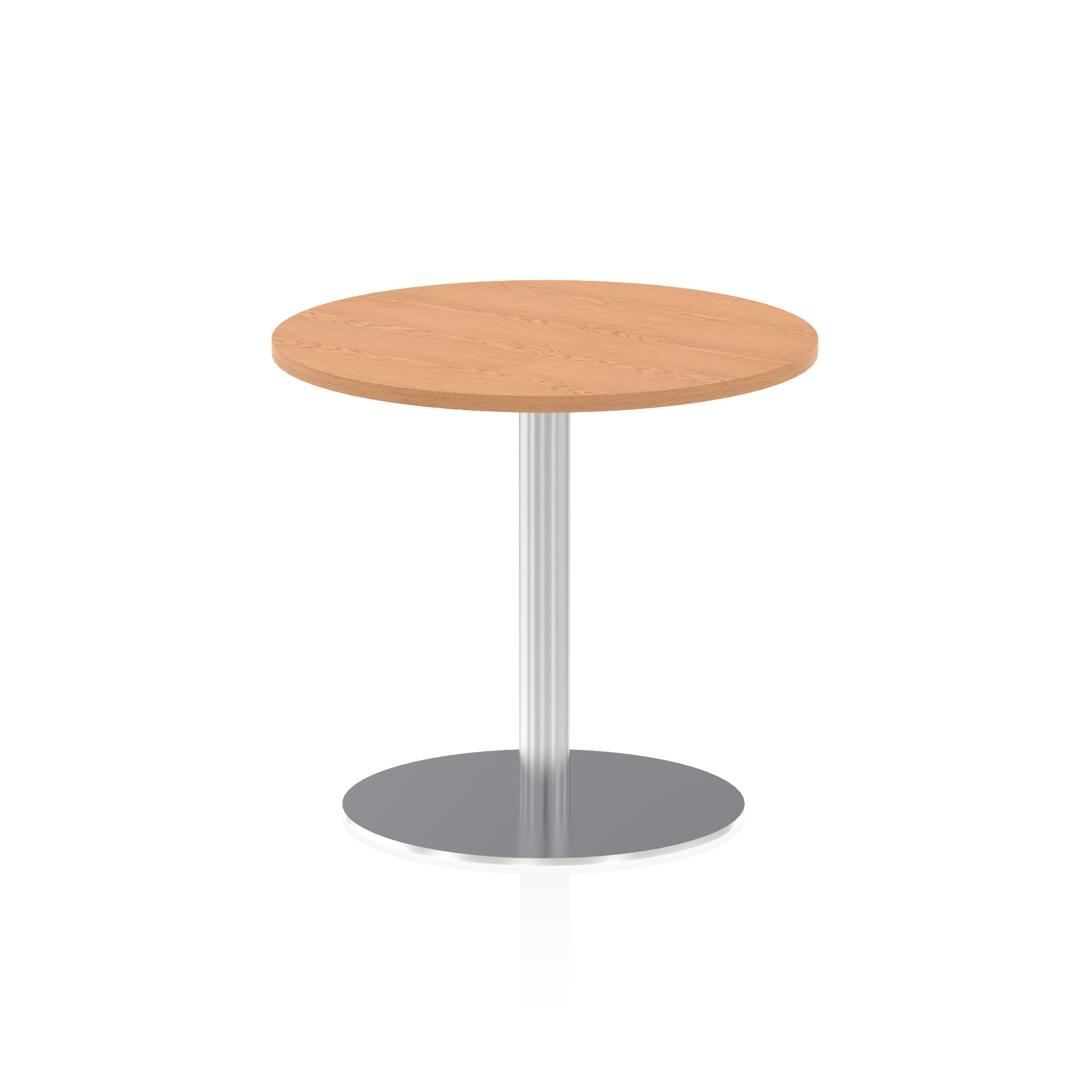 25mm thick desk top profile | Brushed stainless steel effect circular base (580mm diameter) | Brushed stainless steel pillars (76mm diameter) | Weighted base provides stability | Two part bolted frame system
