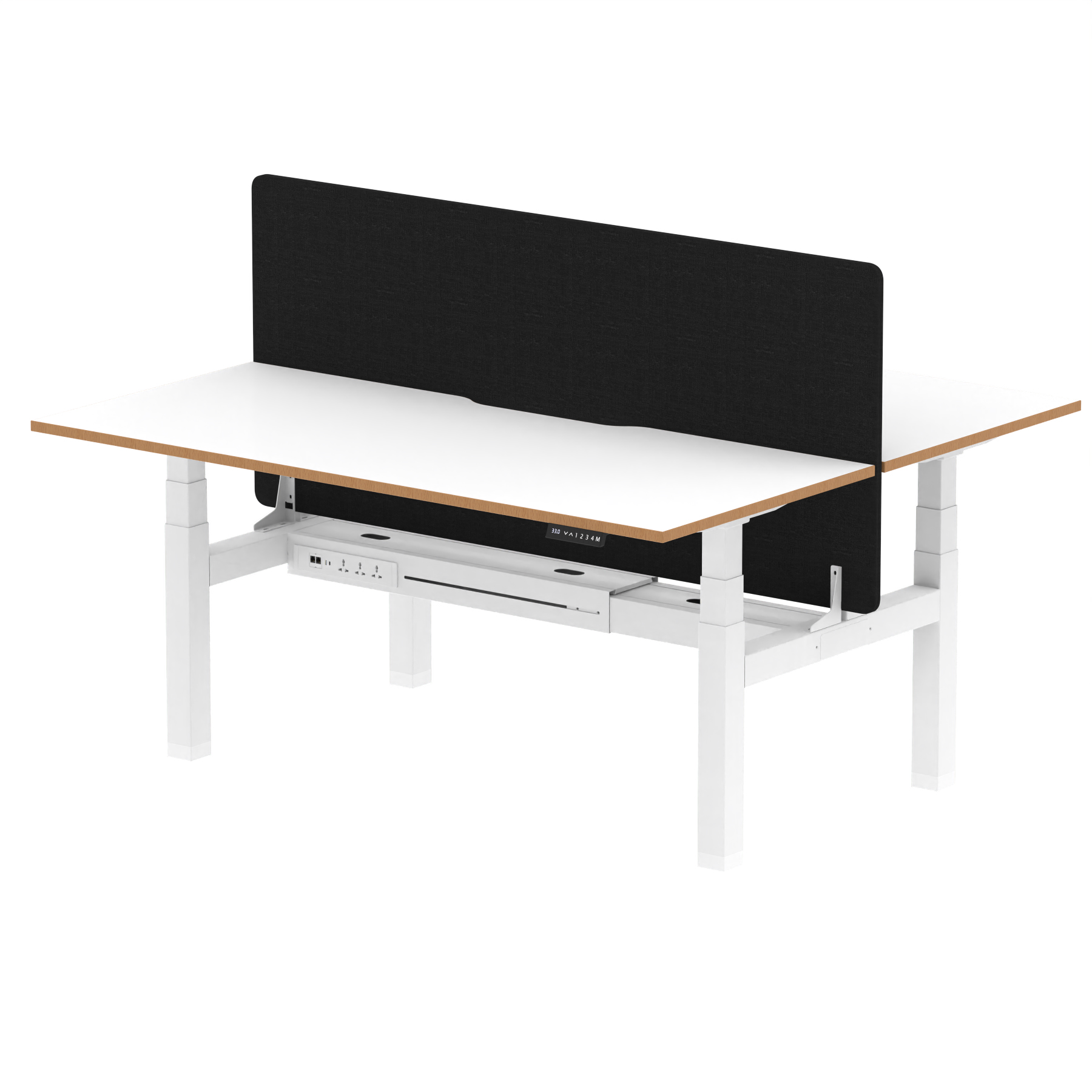 Elevate your office with the Air Back-to-Back Height Adjustable Desk, a blend of ergonomics and connectivity. Each desk includes two Ethernet ports, a USB and USB-C port, and three UK plugs, complemented by integrated cable ports for a clean setup. The addition of a straight screen offers privacy and focus. This desk is a perfect match for professionals seeking a tidy, tech-friendly, and adaptable workspace.