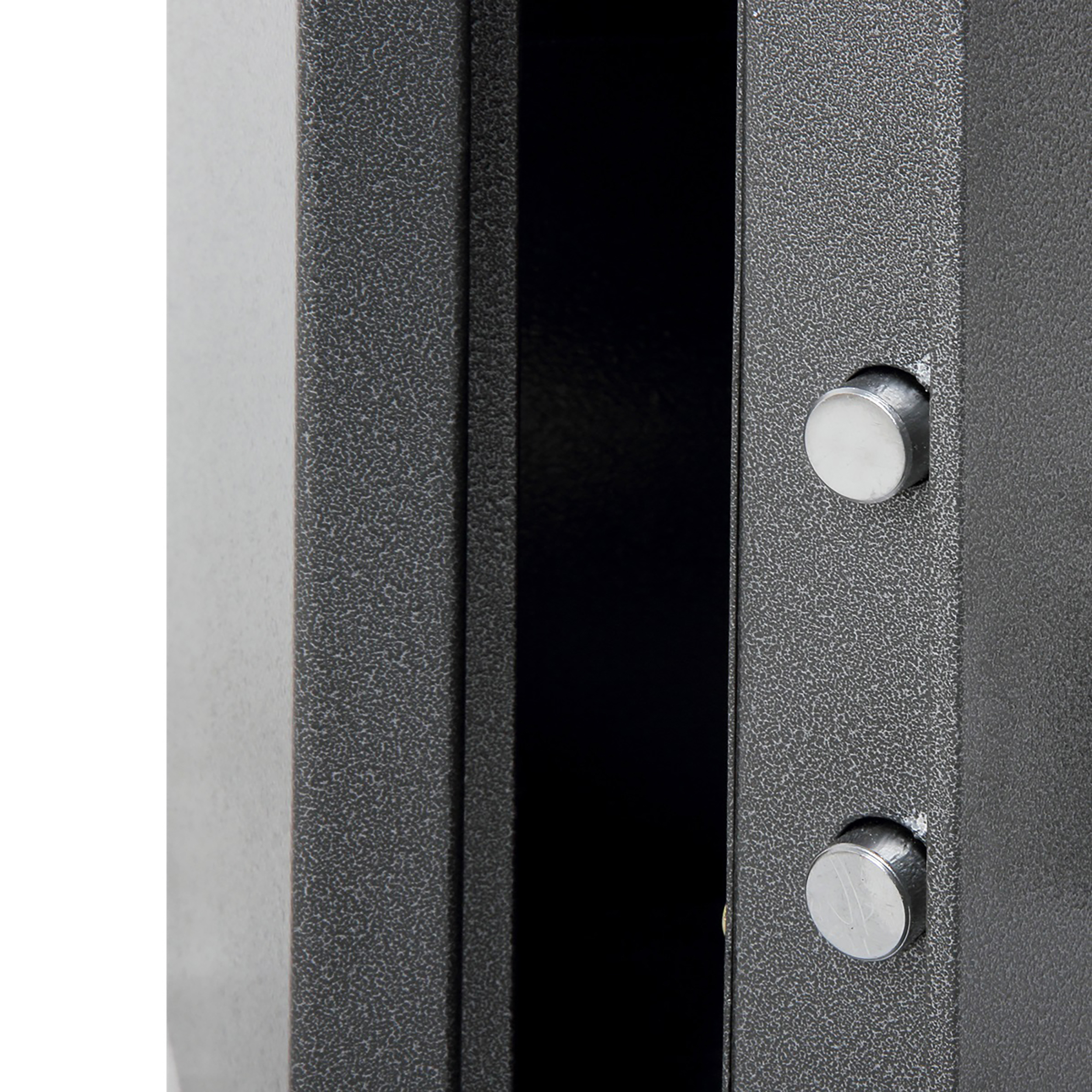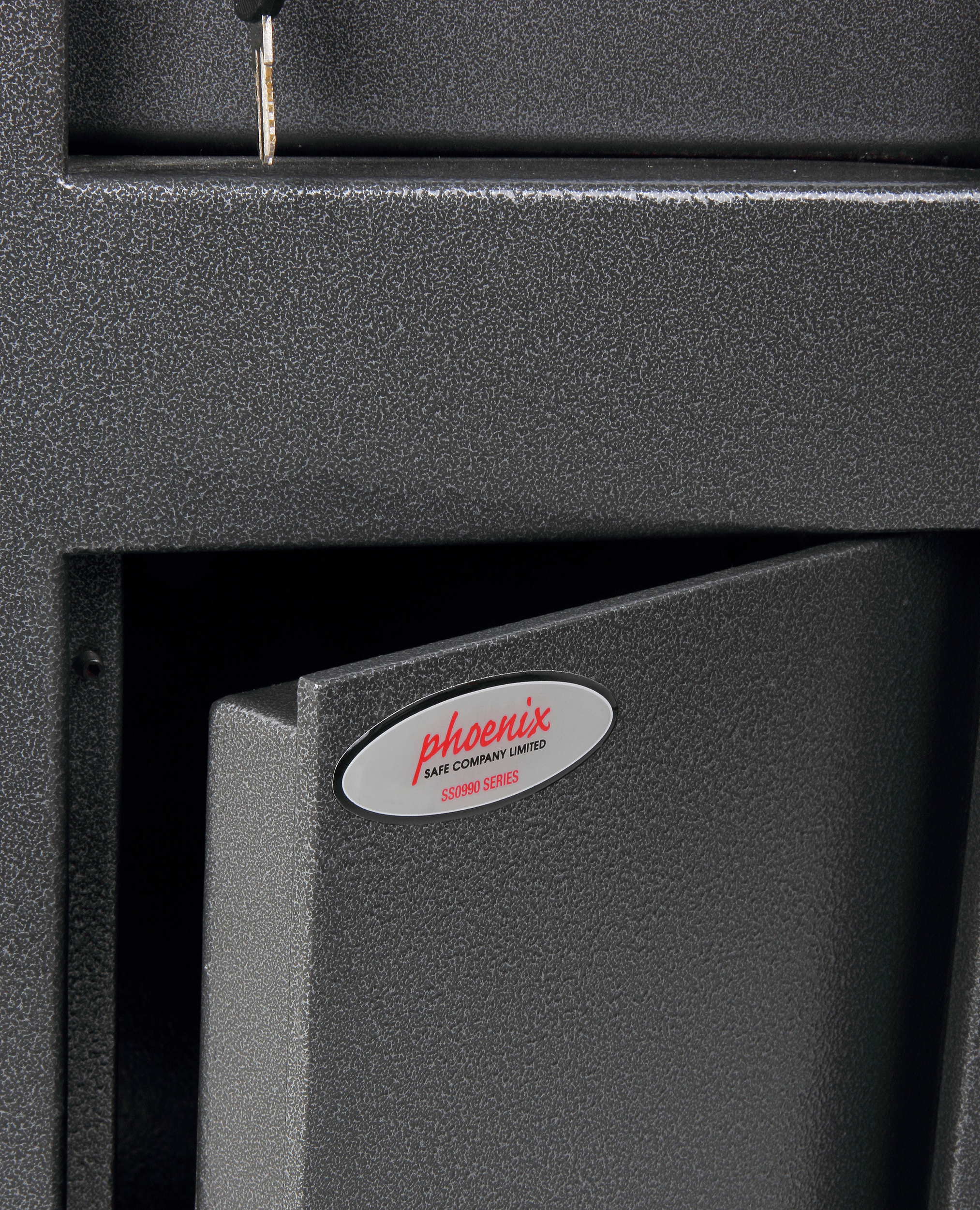 SECURITY PROTECTION – Recommended for overnight cash cover of £1,000 cash or £10,000 valuables | LOCKING – Fitted with a high security double bitted lock supplied with two keys | DEPOSIT FACILITY – Fitted with a lockable deposit (2 keys supplied) with Phoenix tilting baffle plate to ensure that the contents cannot be ‘fished out’ | CONSTRUCTION – Constructed of 6mm steel plate door and 2mm body | FIXING – Ready prepared for floor and wall fixing with bolts supplied | COLOUR – Finished in a high quality scratch resistant Metallic Graphite paint.