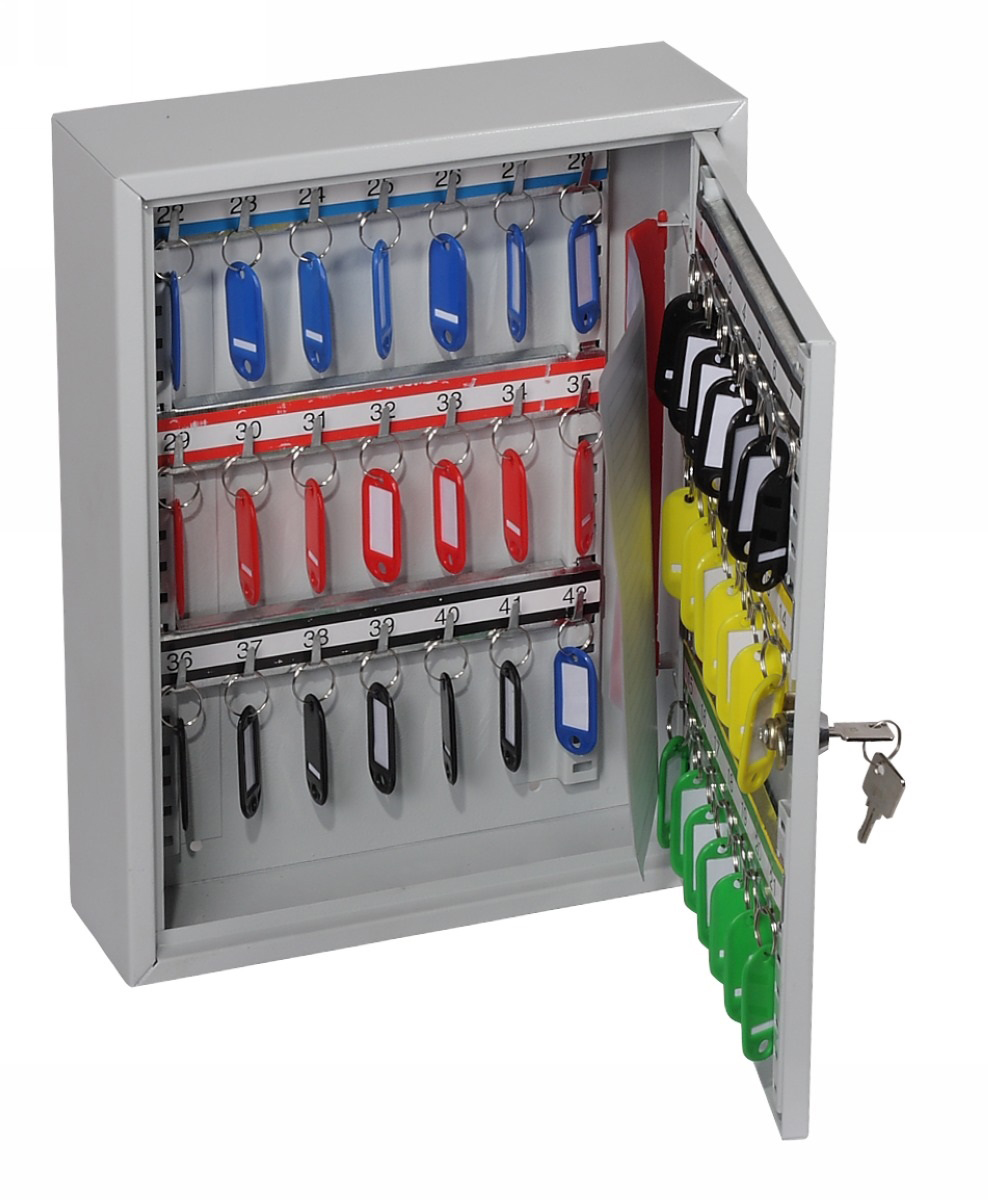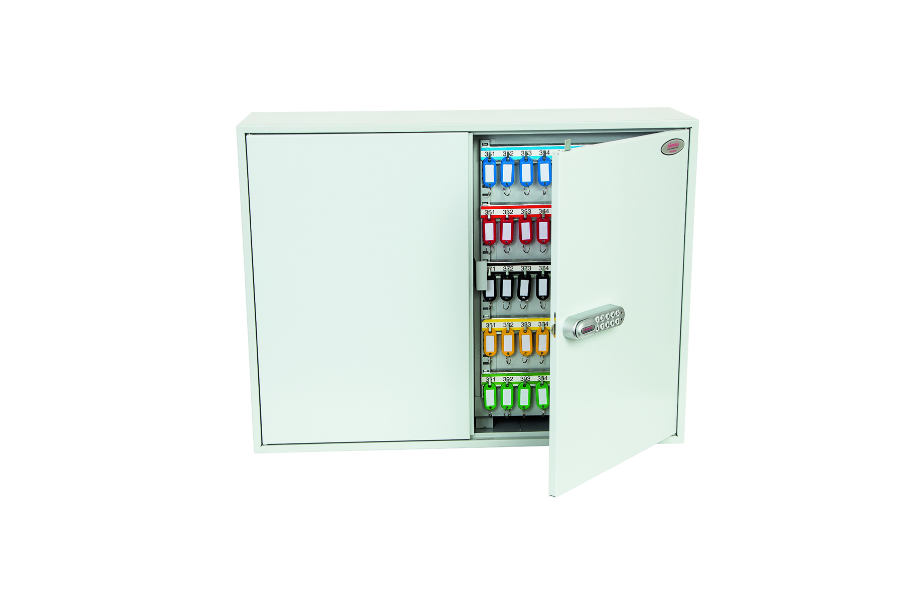 NO. OF KEY HOOKS – 42, 64, 100, 200, 300, 400 or 600 | SPECIAL FEATURES – Each unit comes with adjustable hook bars and number labels to suit. | FIXING – The cabinets have pre-drilled fixing holes for wall mounting and bolts supplied | FINISH – Finished in a high quality durable powder coated finish