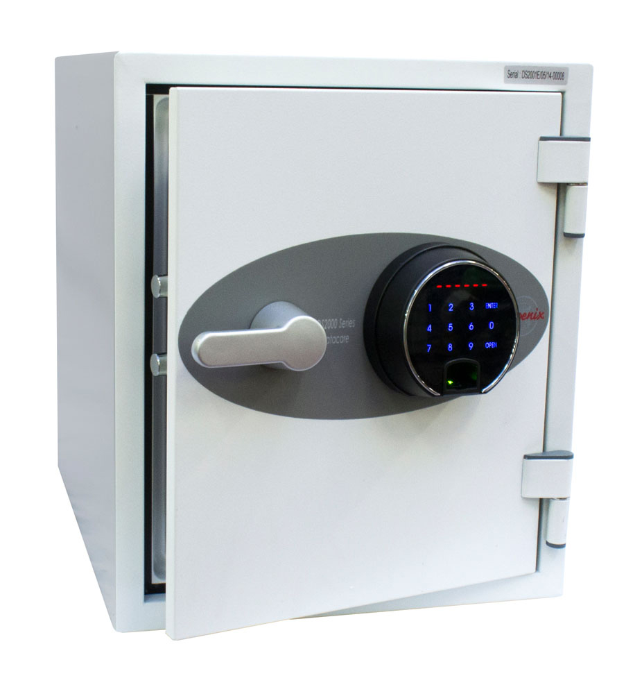 Fingerprint – Fitted with an advanced high security touchscreen keypad & fingerprint lock with clear LED display, internal alarm, dual control, hidden code and scrambled code that can be programmed as standard with up to 128 fingerprints