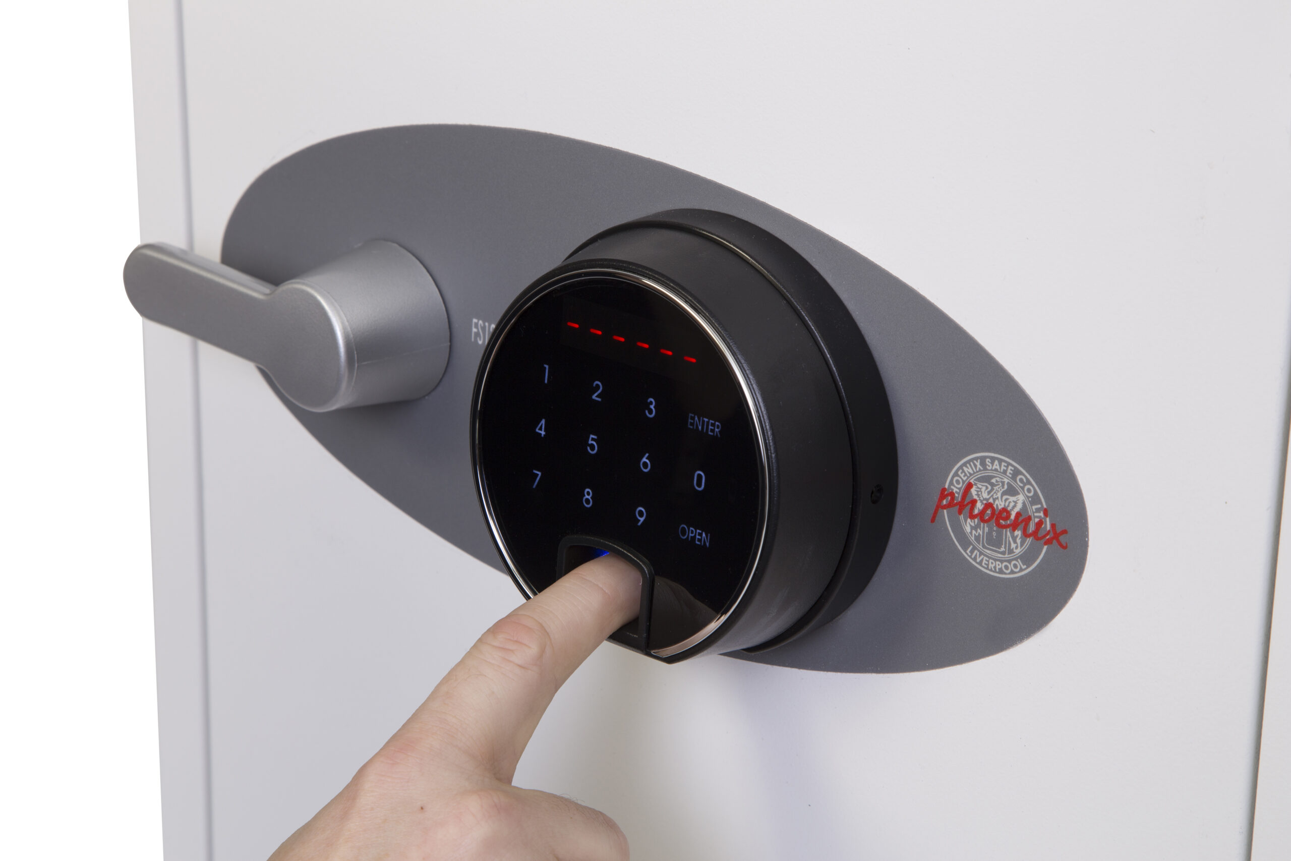Fingerprint – Fitted with an advanced high security touchscreen keypad & fingerprint lock with clear LED display, internal alarm, dual control, hidden code and scrambled code that can be programmed as standard with up to 128 fingerprints